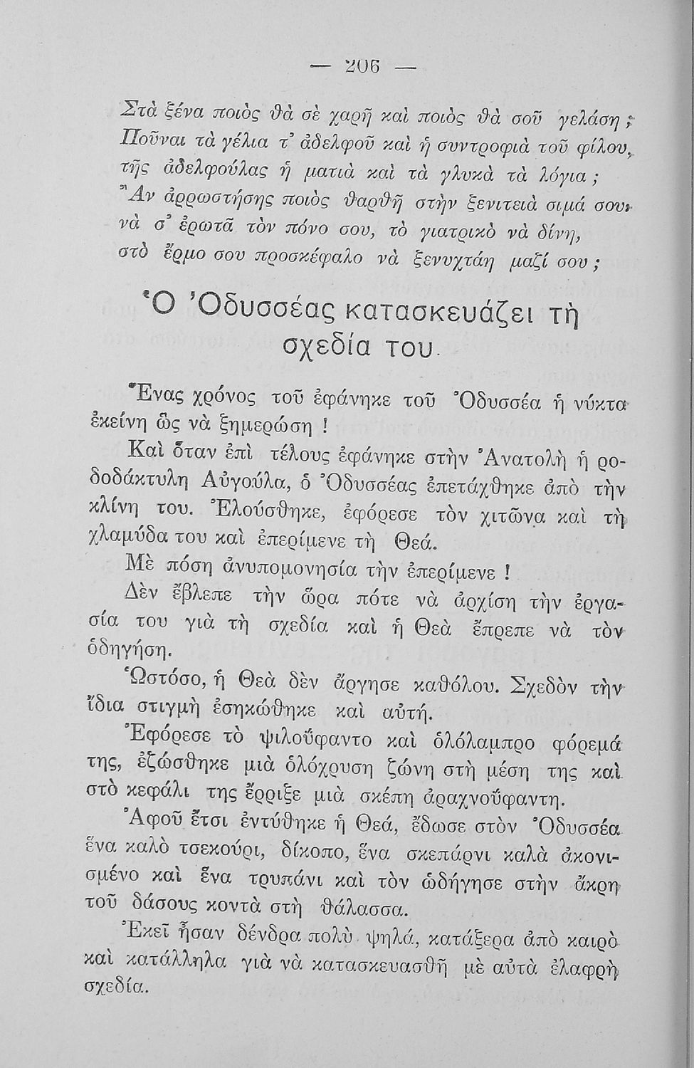Αναγνωστικό Γ ' Δημοτικού το οποίο παρουσιάζει το ταξίδι του Οδυσσέα προς την Ιθάκη. Στο τέλος το βιβλίο περιλαμβάνει σειρά από δημοτικά ποιήματα τα οποία εκπέμπουν μηνύματα γυρισμού και ξενιτιάς.