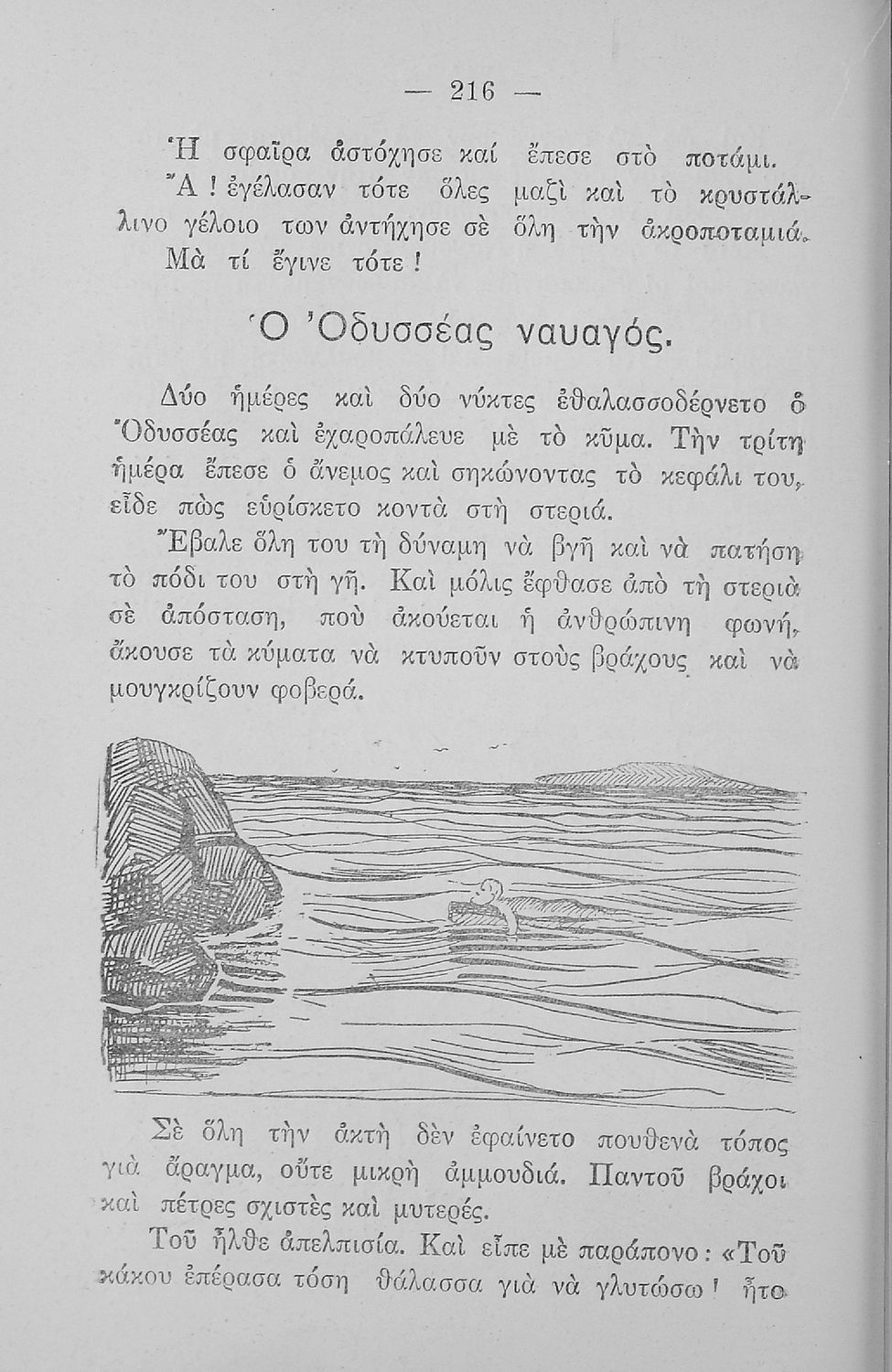 Αναγνωστικό για τους μαθητές της Γ΄ Δημοτικού που εξιστορεί τις περιπέτειες του Οδυσσέα. Περιέχει παράρτημα με ποιήματα.