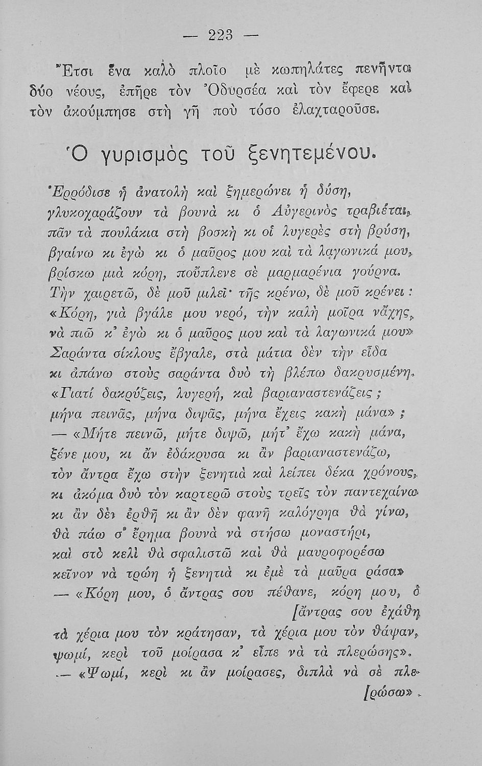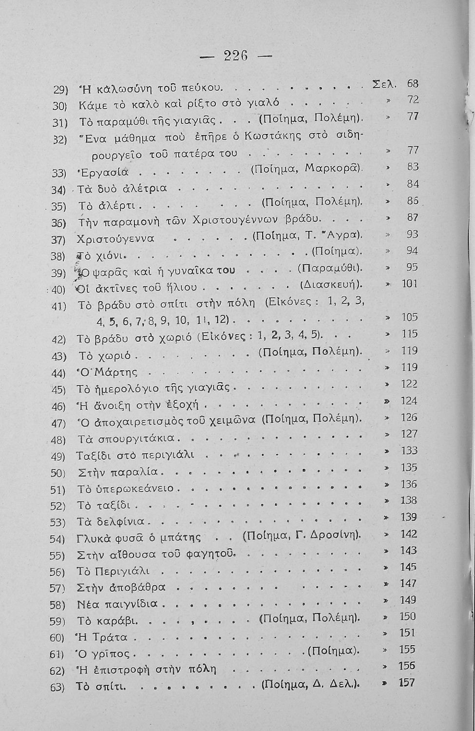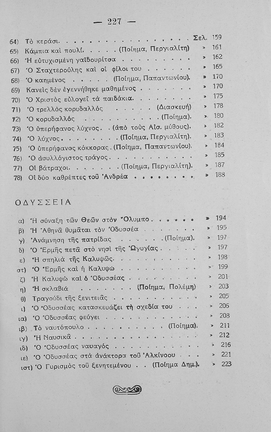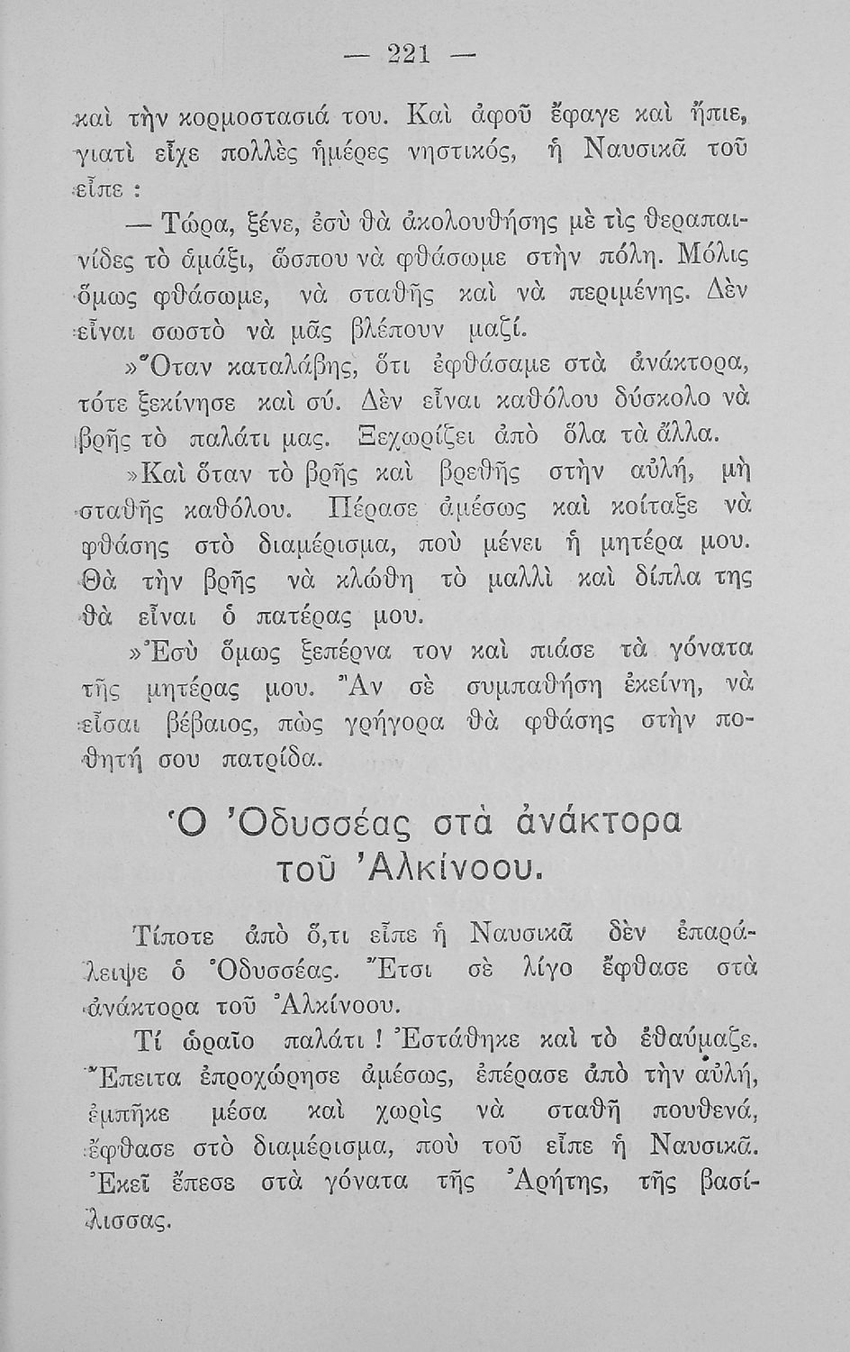 Βαθμίδα εκπαίδευσης: Πρωτοβάθμια Τάξη: Γ' Δημοτικού Μάθημα: Νέα Ελληνικά Γλώσσα: Δημοτική με στοιχεία καθαρεύουσας Παρουσίαση περιεχομένου: Αναγνωστικό Γ΄ Δημοτικού που περιλαμβάνει οικογενειακές ιστορίες, στιγμιότυπα από την ελληνική ύπαιθρο, τις θρησκευτικές παραδόσεις, τις 4 εποχές, τα επαγγέλματα και τις συνήθειες των Ελλήνων, την χλωρίδα και την πανίδα της Ελλάδας. Περιλαμβάνει και κείμενα εμπνευσμένα από την ελληνική μυθολογία και συγκεκριμένα από την Οδύσσεια. |