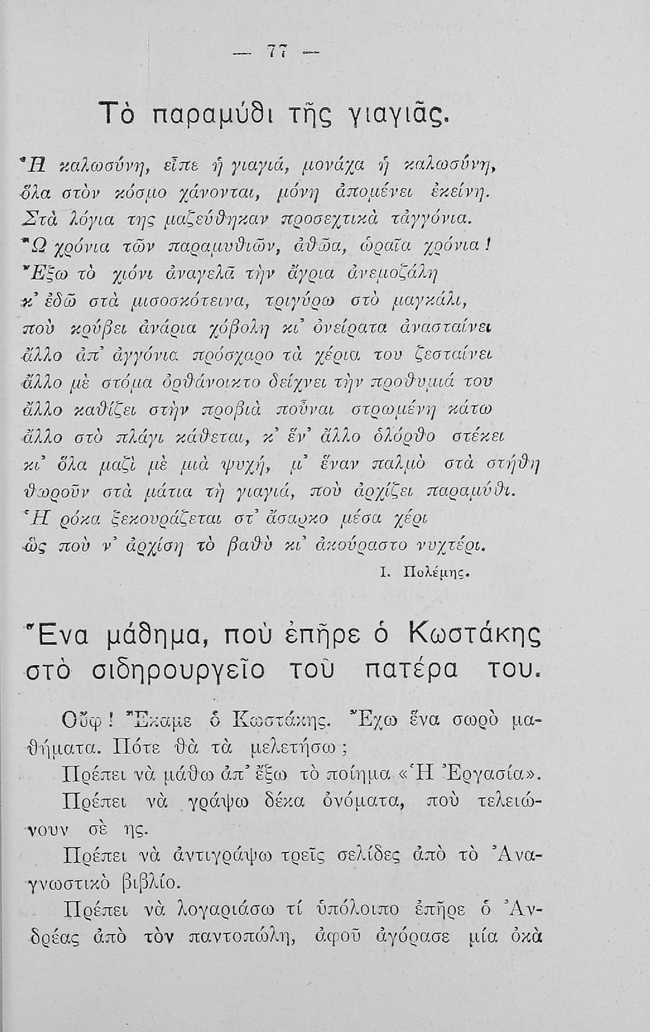 Γλώσσα: Δημοτική με στοιχεία καθαρεύουσας