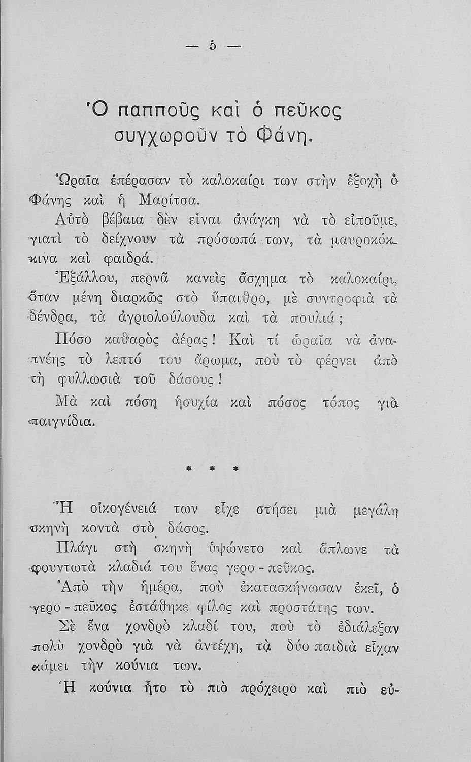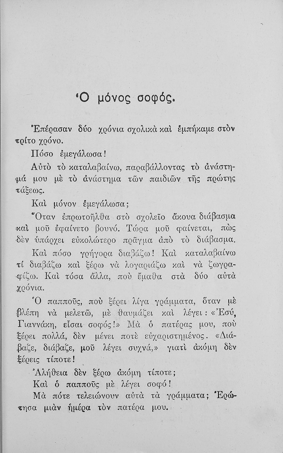 Βαθμίδα εκπαίδευσης: Πρωτοβάθμια Τάξη: Γ' Δημοτικού Μάθημα: Νέα Ελληνικά Γλώσσα: Δημοτική με στοιχεία καθαρεύουσας Παρουσίαση περιεχομένου: Αναγνωστικό Γ΄ Δημοτικού που περιλαμβάνει οικογενειακές ιστορίες, στιγμιότυπα από την ελληνική ύπαιθρο, τις θρησκευτικές παραδόσεις, τις 4 εποχές, τα επαγγέλματα και τις συνήθειες των Ελλήνων, την χλωρίδα και την πανίδα της Ελλάδας. Περιλαμβάνει και κείμενα εμπνευσμένα από την ελληνική μυθολογία και συγκεκριμένα από την Οδύσσεια. |