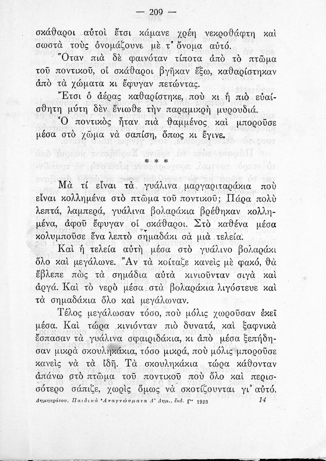Παρουσίαση περιεχομένου: Αναγνωστικό Δ΄ Δημοτικού που περιλαμβάνει κείμενα εμπνευσμένα από την ελληνική μυθολογία, την ελληνική γη, τη χλωρίδα και την πανίδα της Ελλάδας και τις διαπροσωπικές σχέσεις.