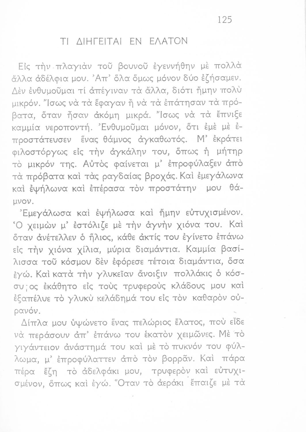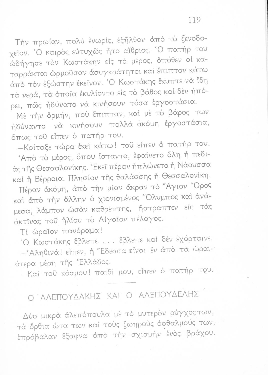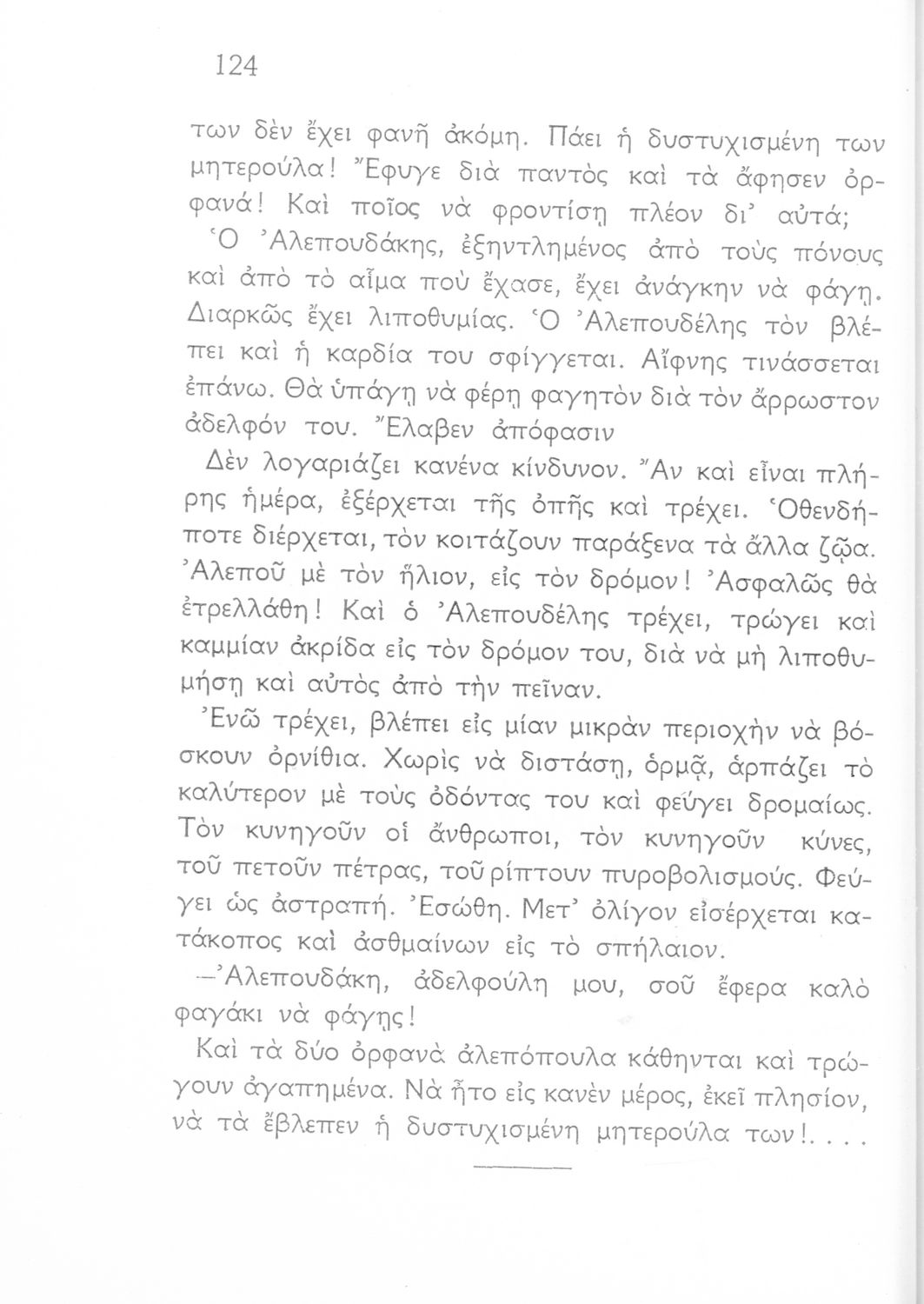 Αναγνωστικό Δ΄ Δημοτικού που περιλαμβάνει θέματα από την θρησκευτική, οικογενειακή και σχολική ζωή του παιδιού, την ελληνική μυθολογία και ιστορία και τη ζωή των ζώων.