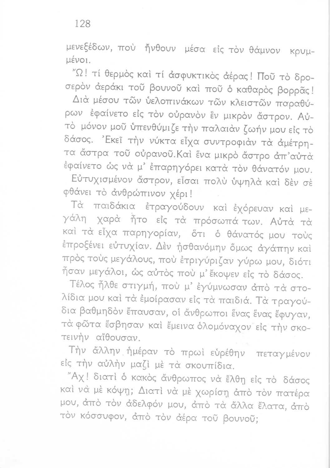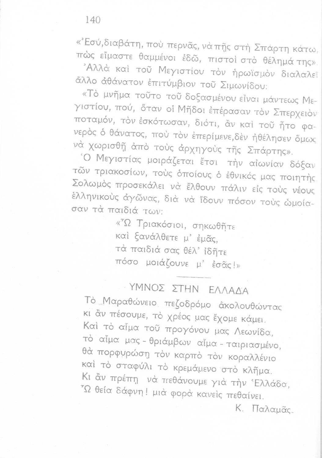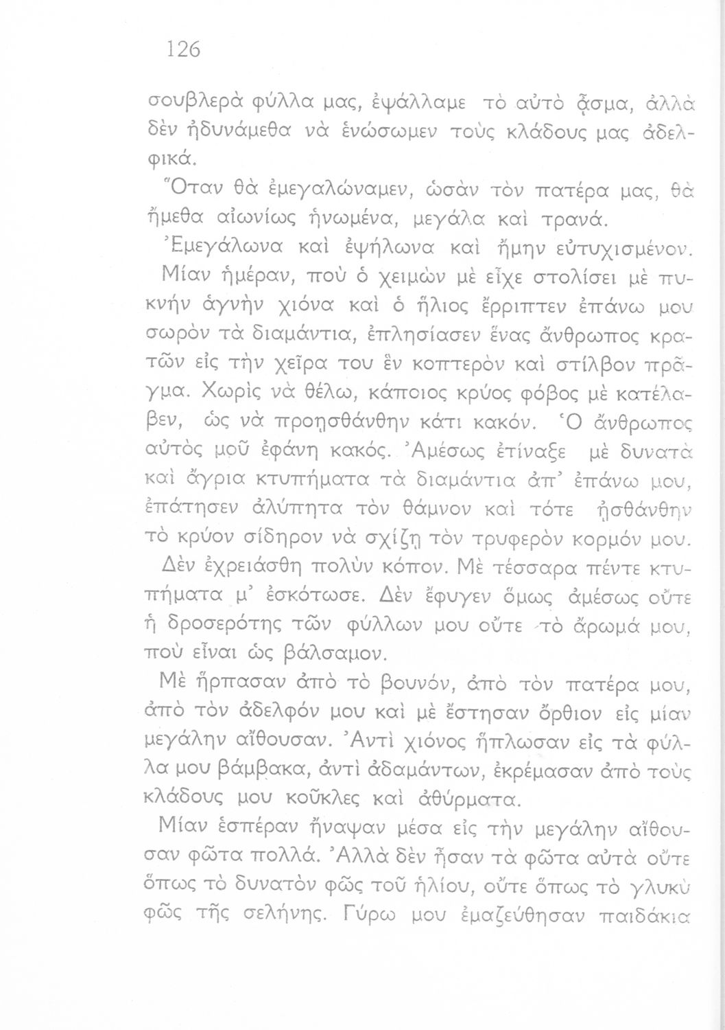Σχολικό εγχειρίδιο Νέων Ελληνικών Δ΄ Γυμνασίου Θηλέων που περιλαμβάνει πεζά, ποιήματα και δημοτικά τραγούδια εμπνευσμένα από την σύγχρονη ελληνική ιστορία και την οικογενειακή και θρησκευτική ζωή. Περιέχει και