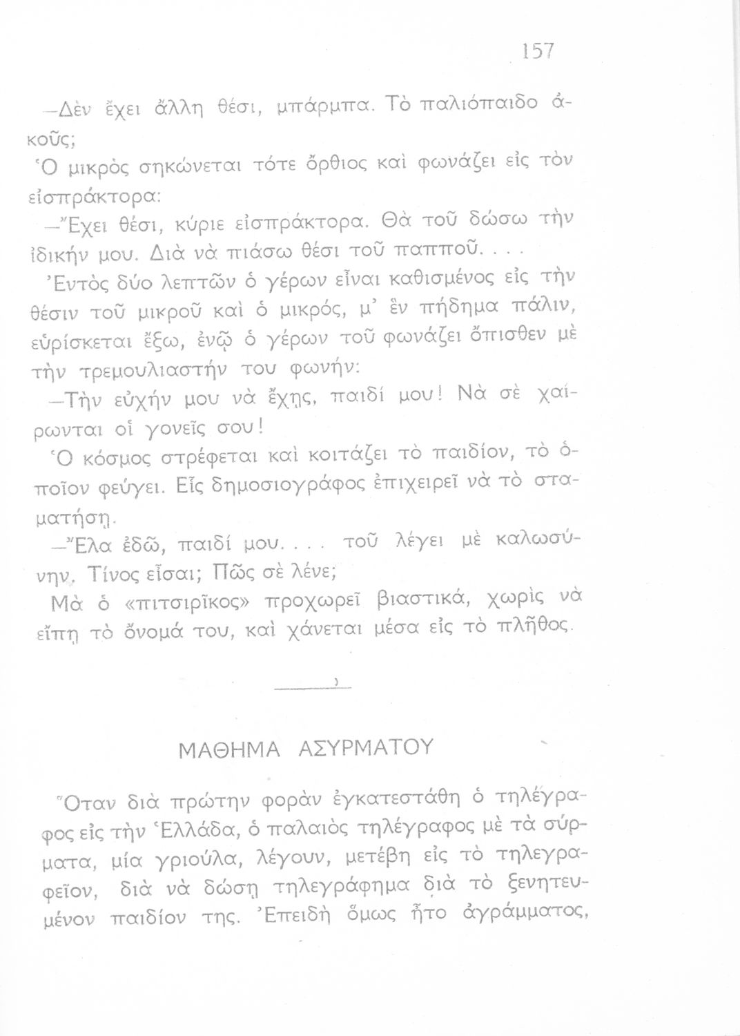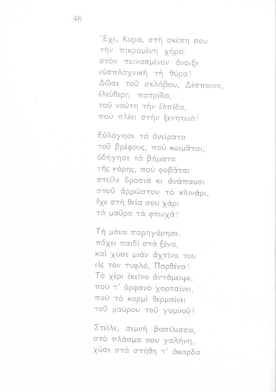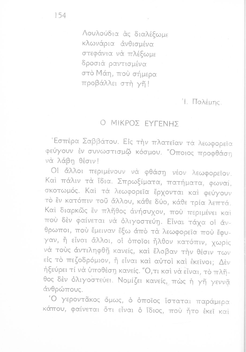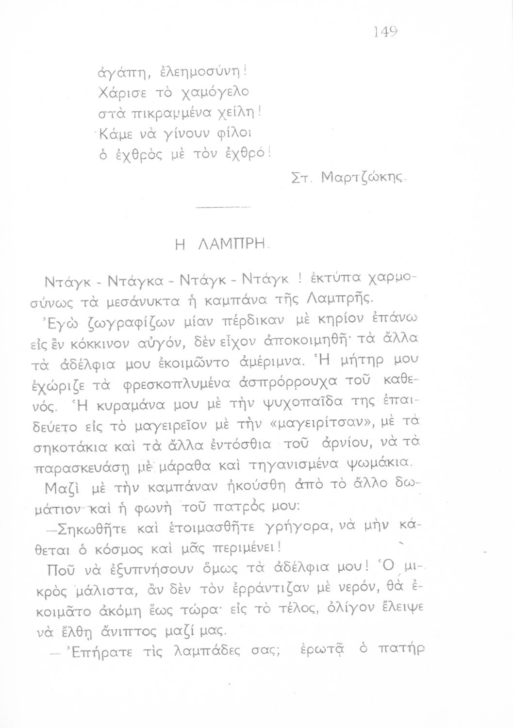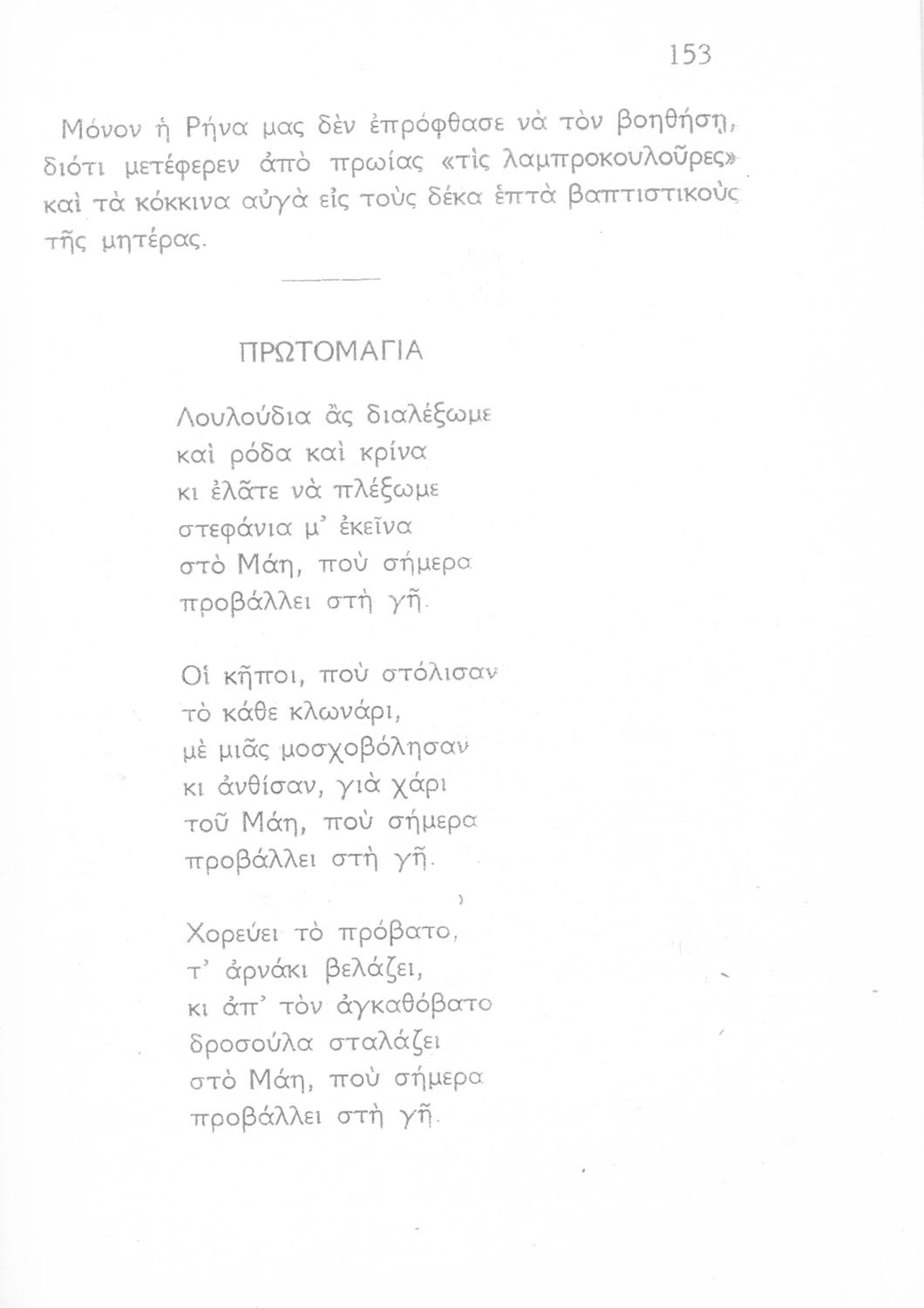Σχολικό εγχειρίδιο Νέων Ελληνικών Δ΄ Γυμνασίου Θηλέων που περιλαμβάνει πεζά, ποιήματα και δημοτικά τραγούδια εμπνευσμένα από την σύγχρονη ελληνική ιστορία και την οικογενειακή και θρησκευτική ζωή. Περιέχει και