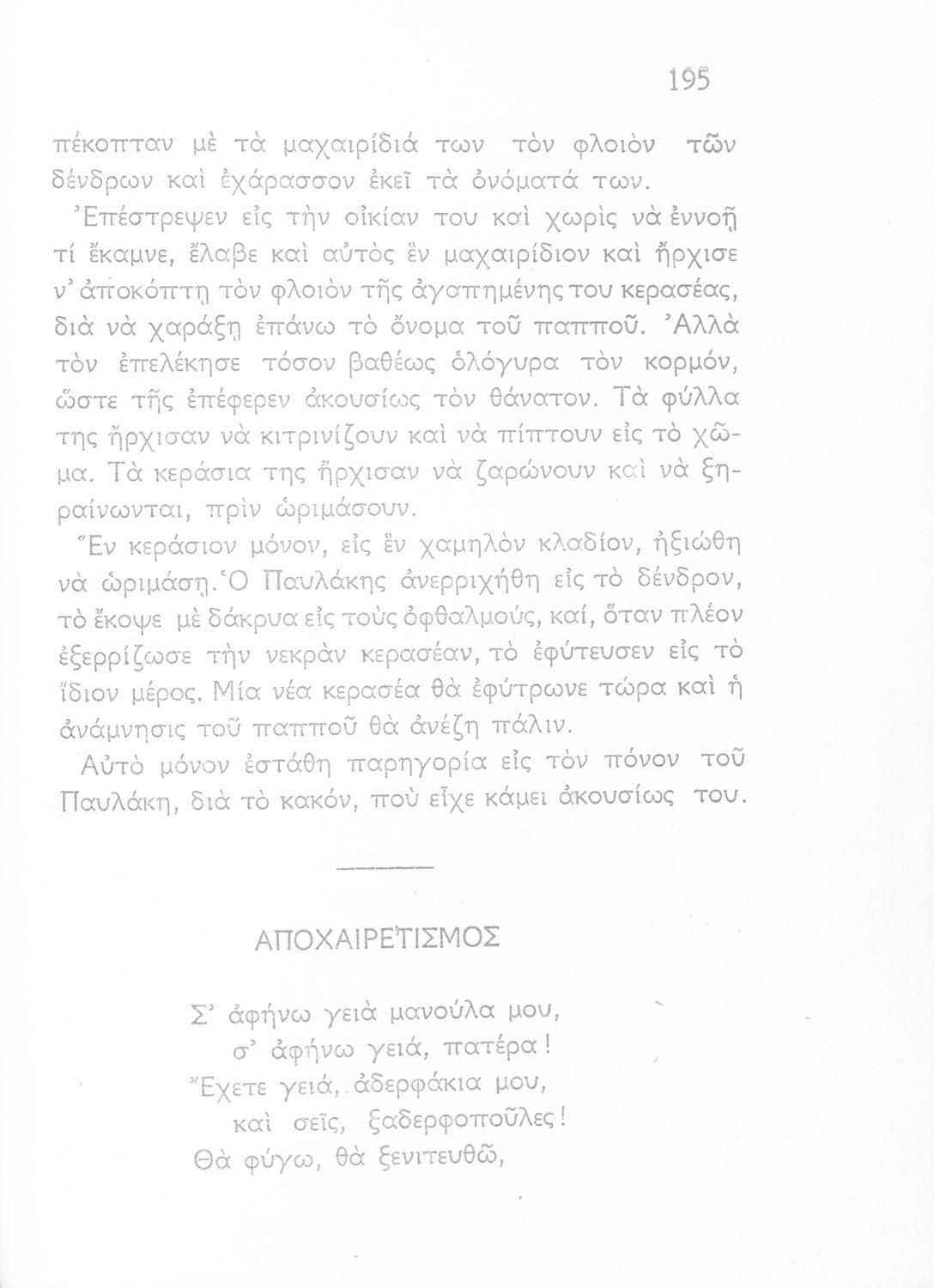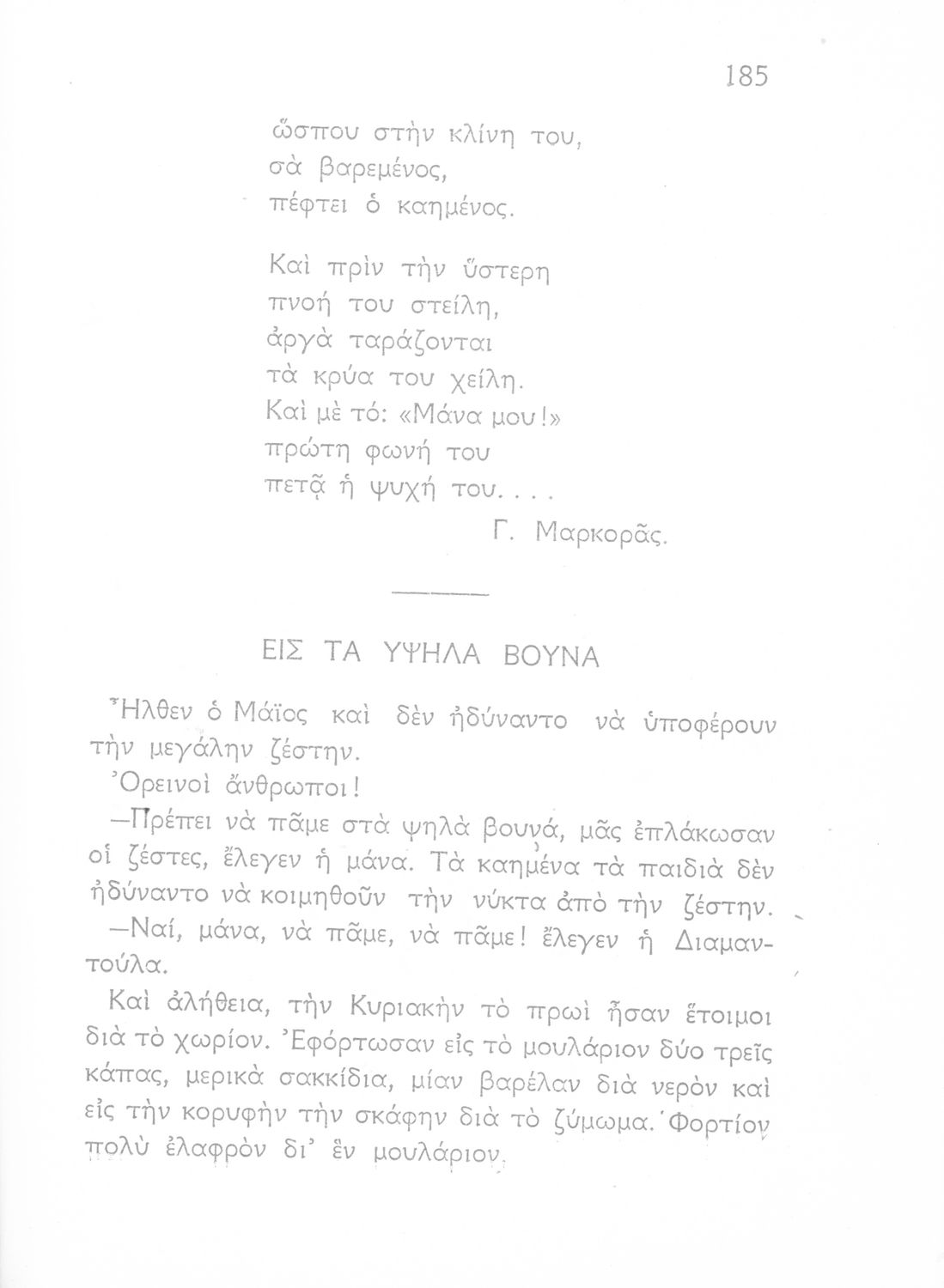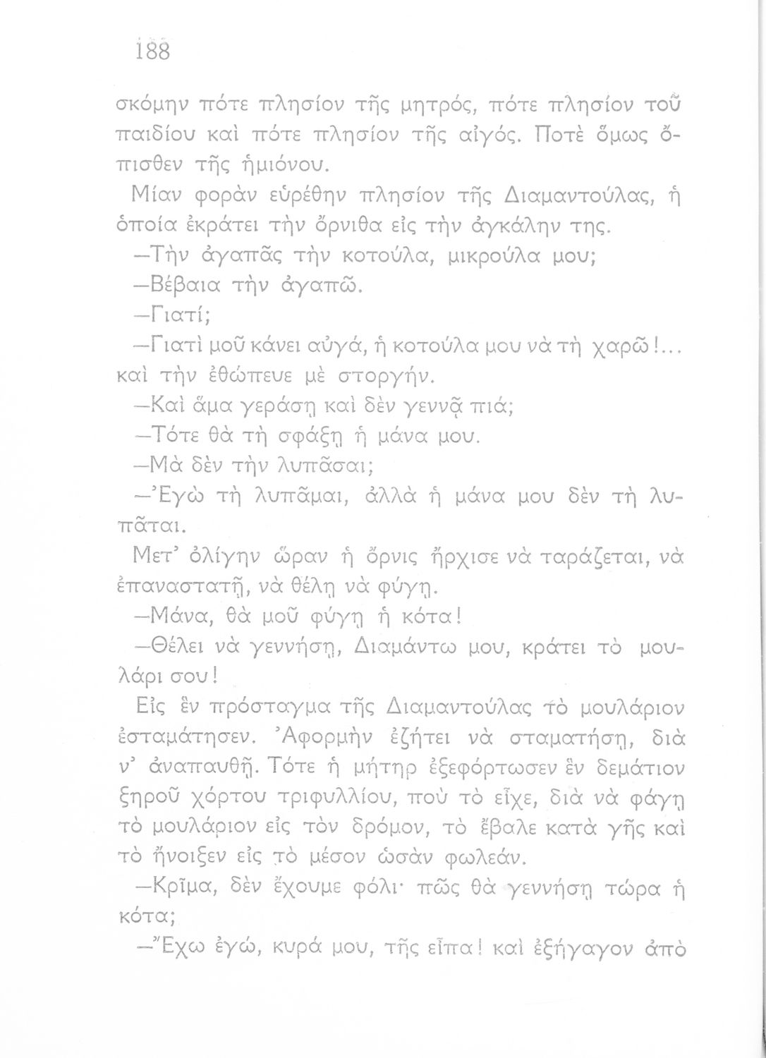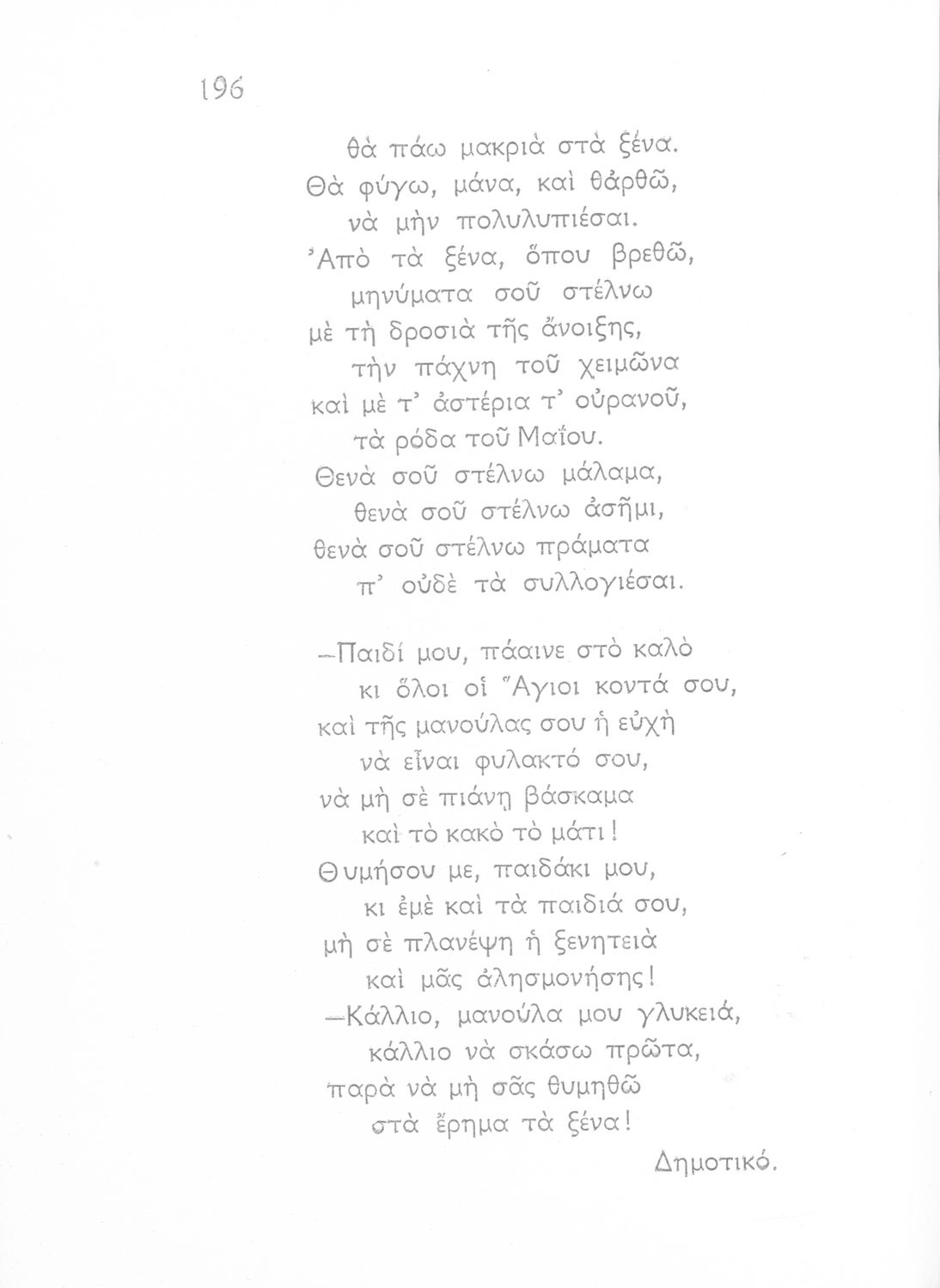 Σχολικό εγχειρίδιο Νέων Ελληνικών Δ΄ Γυμνασίου Θηλέων που περιλαμβάνει πεζά, ποιήματα και δημοτικά τραγούδια εμπνευσμένα από την σύγχρονη ελληνική ιστορία και την οικογενειακή και θρησκευτική ζωή. Περιέχει και