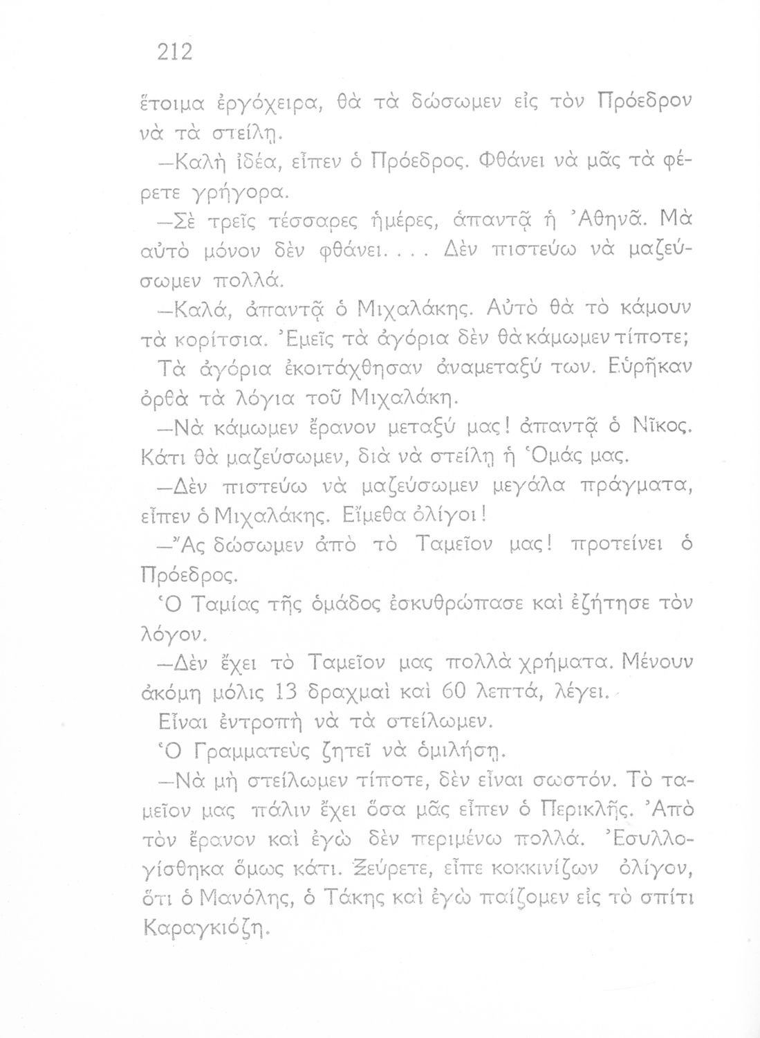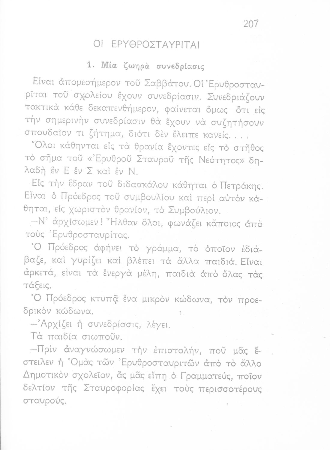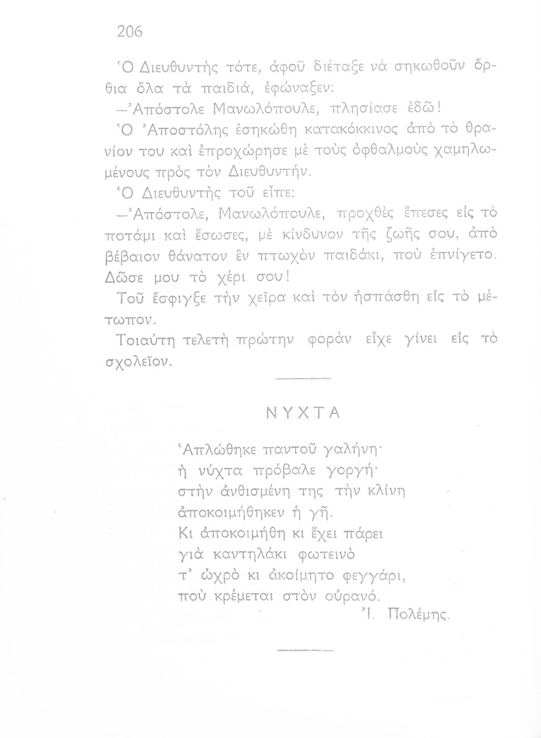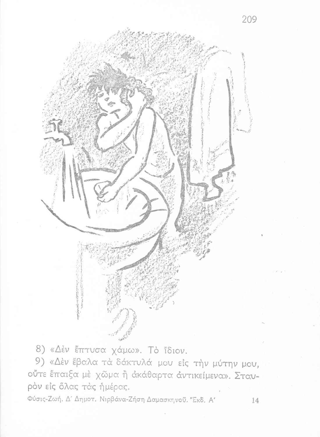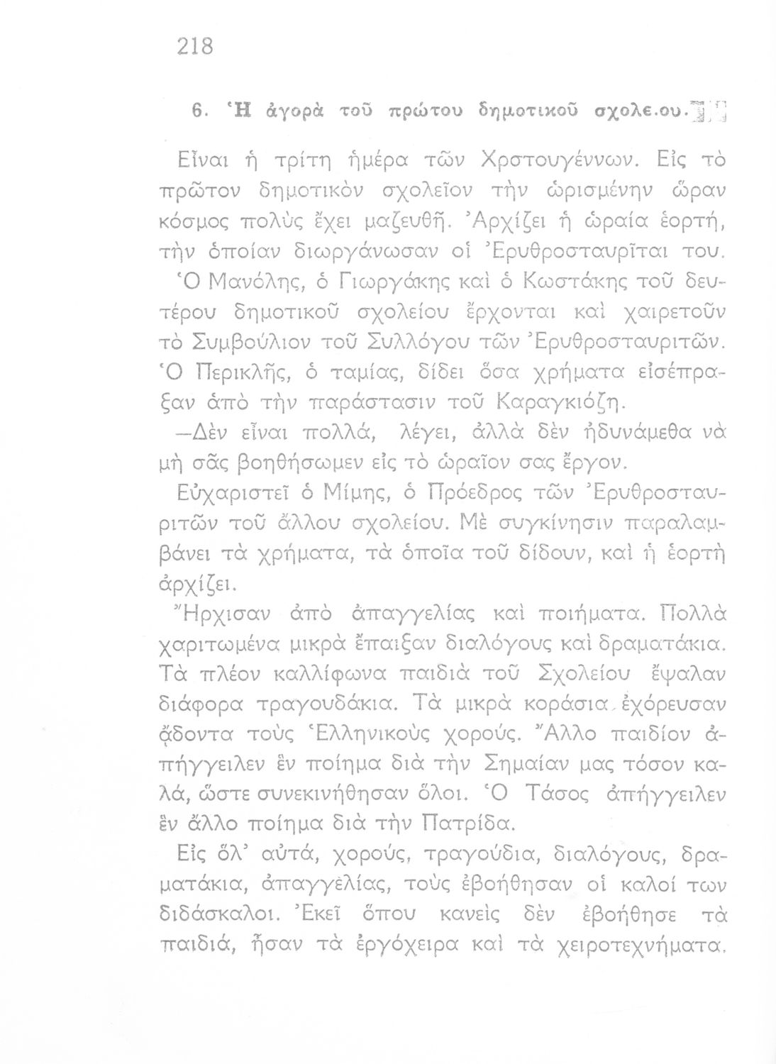 Σχολικό εγχειρίδιο Νέων Ελληνικών Δ΄ Γυμνασίου Θηλέων που περιλαμβάνει πεζά, ποιήματα και δημοτικά τραγούδια εμπνευσμένα από την σύγχρονη ελληνική ιστορία και την οικογενειακή και θρησκευτική ζωή. Περιέχει και