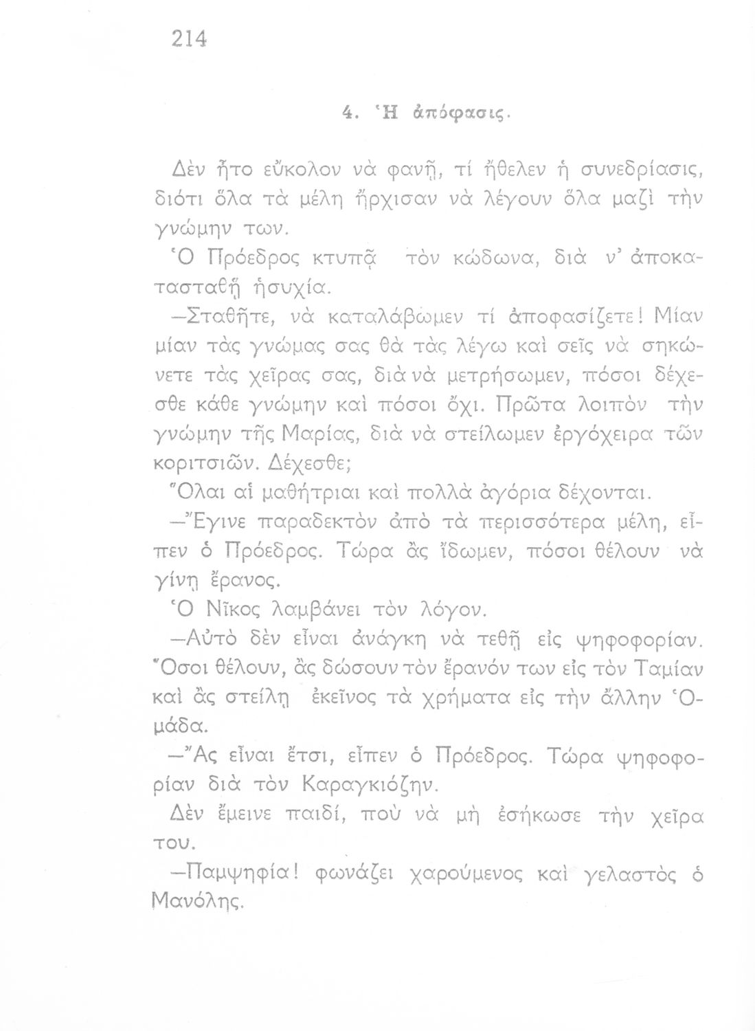 Αναγνωστικό Δ΄ Δημοτικού που περιλαμβάνει θέματα από την θρησκευτική, οικογενειακή και σχολική ζωή του παιδιού, την ελληνική μυθολογία και ιστορία και τη ζωή των ζώων.