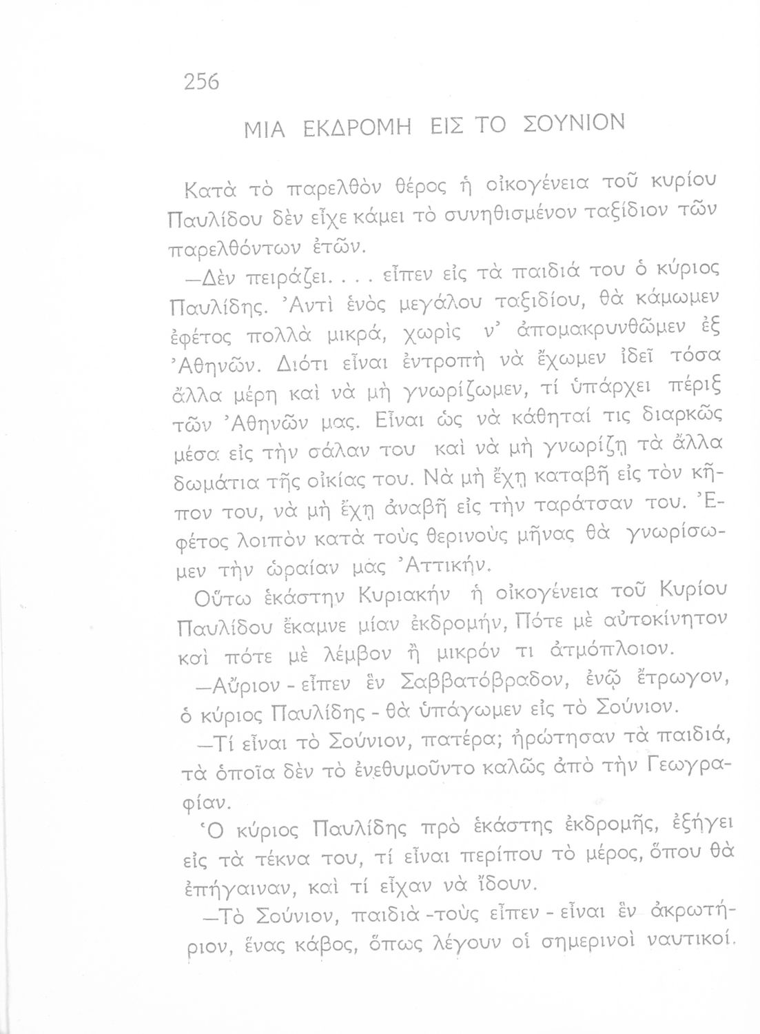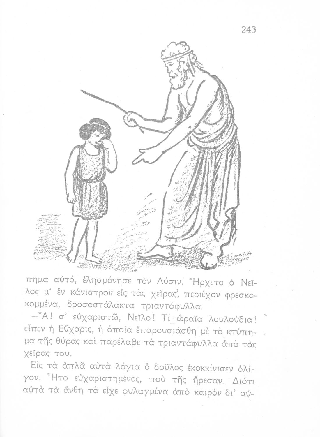 Αναγνωστικό Δ΄ Δημοτικού που περιλαμβάνει θέματα από την θρησκευτική, οικογενειακή και σχολική ζωή του παιδιού, την ελληνική μυθολογία και ιστορία και τη ζωή των ζώων.