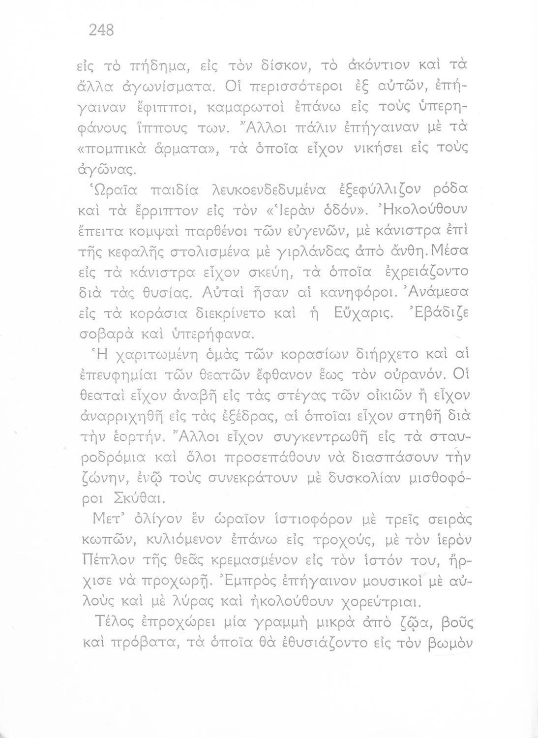 Σχολικό εγχειρίδιο Νέων Ελληνικών Δ΄ Γυμνασίου Θηλέων που περιλαμβάνει πεζά, ποιήματα και δημοτικά τραγούδια εμπνευσμένα από την σύγχρονη ελληνική ιστορία και την οικογενειακή και θρησκευτική ζωή. Περιέχει και