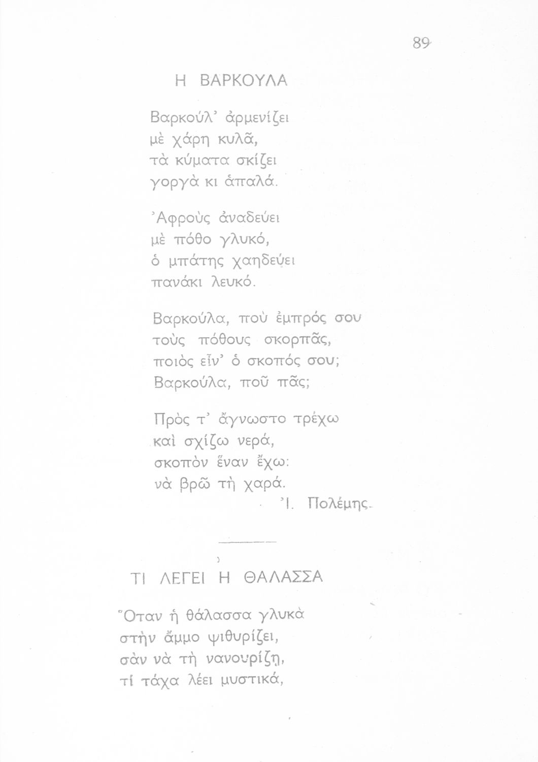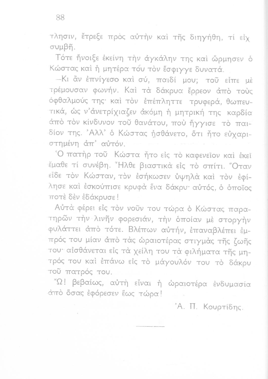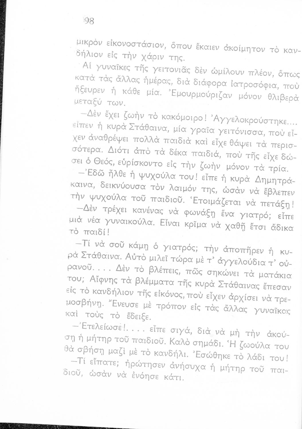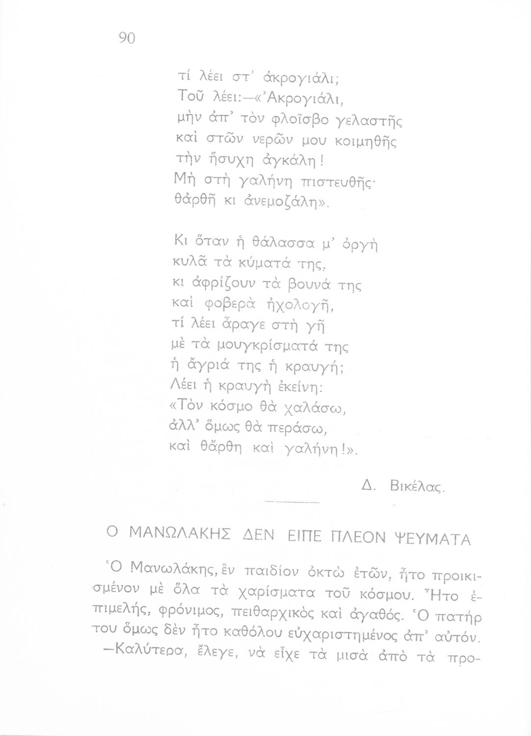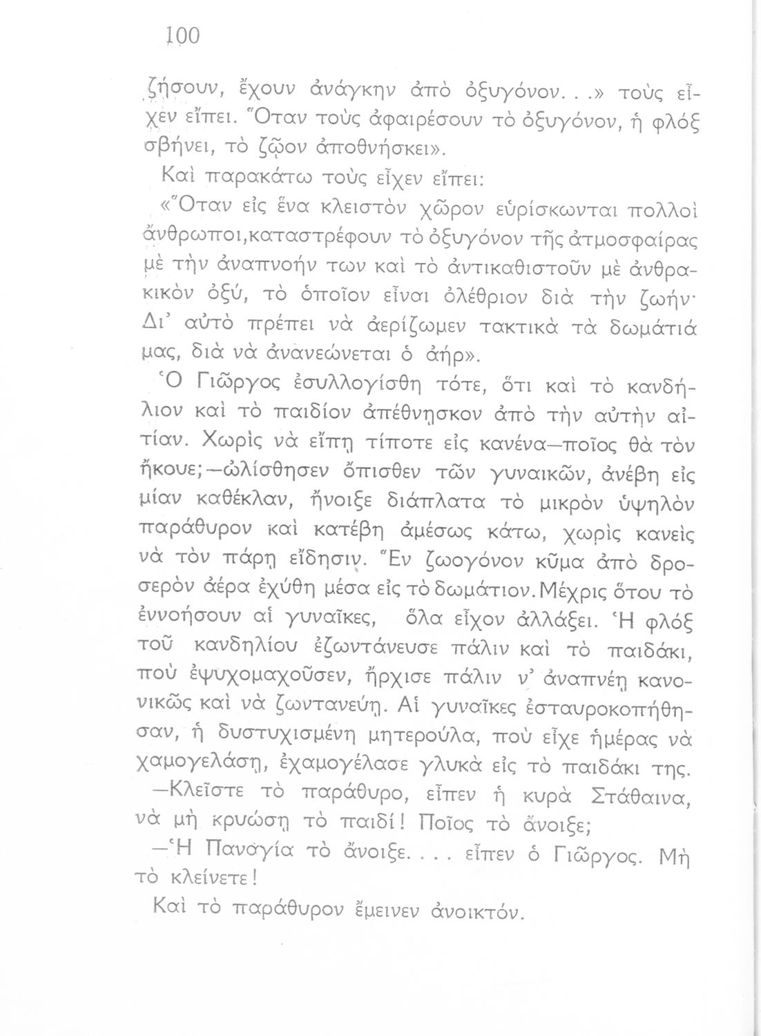 Σχολικό εγχειρίδιο Νέων Ελληνικών Δ΄ Γυμνασίου Θηλέων που περιλαμβάνει πεζά, ποιήματα και δημοτικά τραγούδια εμπνευσμένα από την σύγχρονη ελληνική ιστορία και την οικογενειακή και θρησκευτική ζωή. Περιέχει και