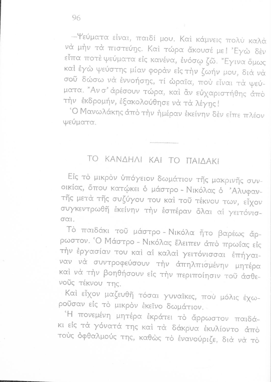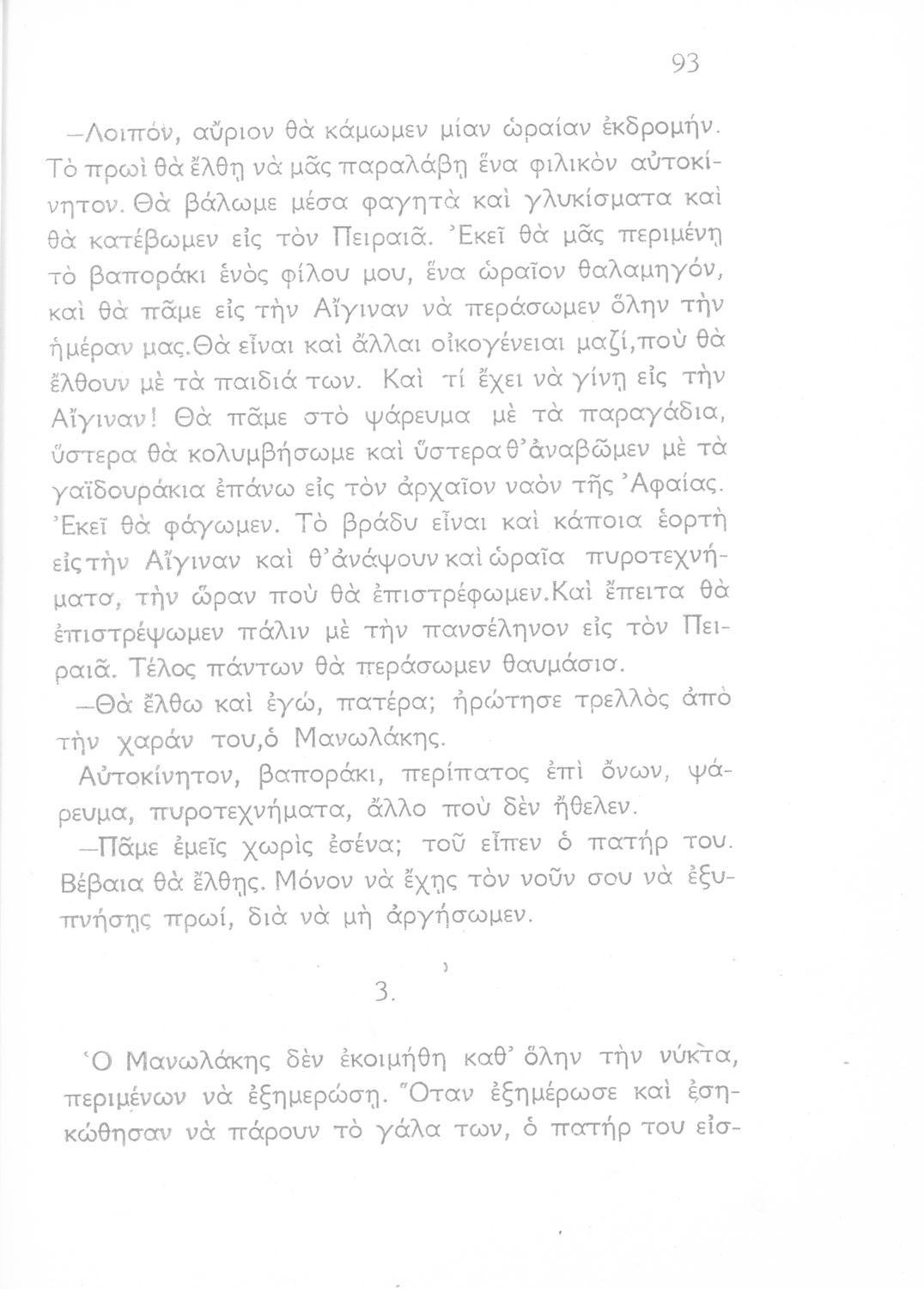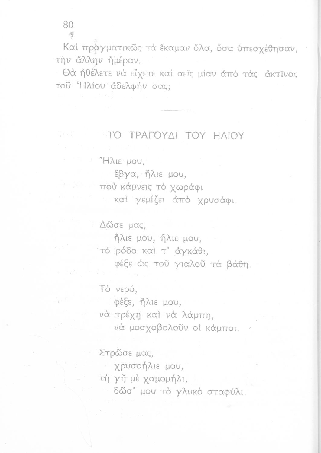 Αναγνωστικό Δ΄ Δημοτικού που περιλαμβάνει θέματα από την θρησκευτική, οικογενειακή και σχολική ζωή του παιδιού, την ελληνική μυθολογία και ιστορία και τη ζωή των ζώων.