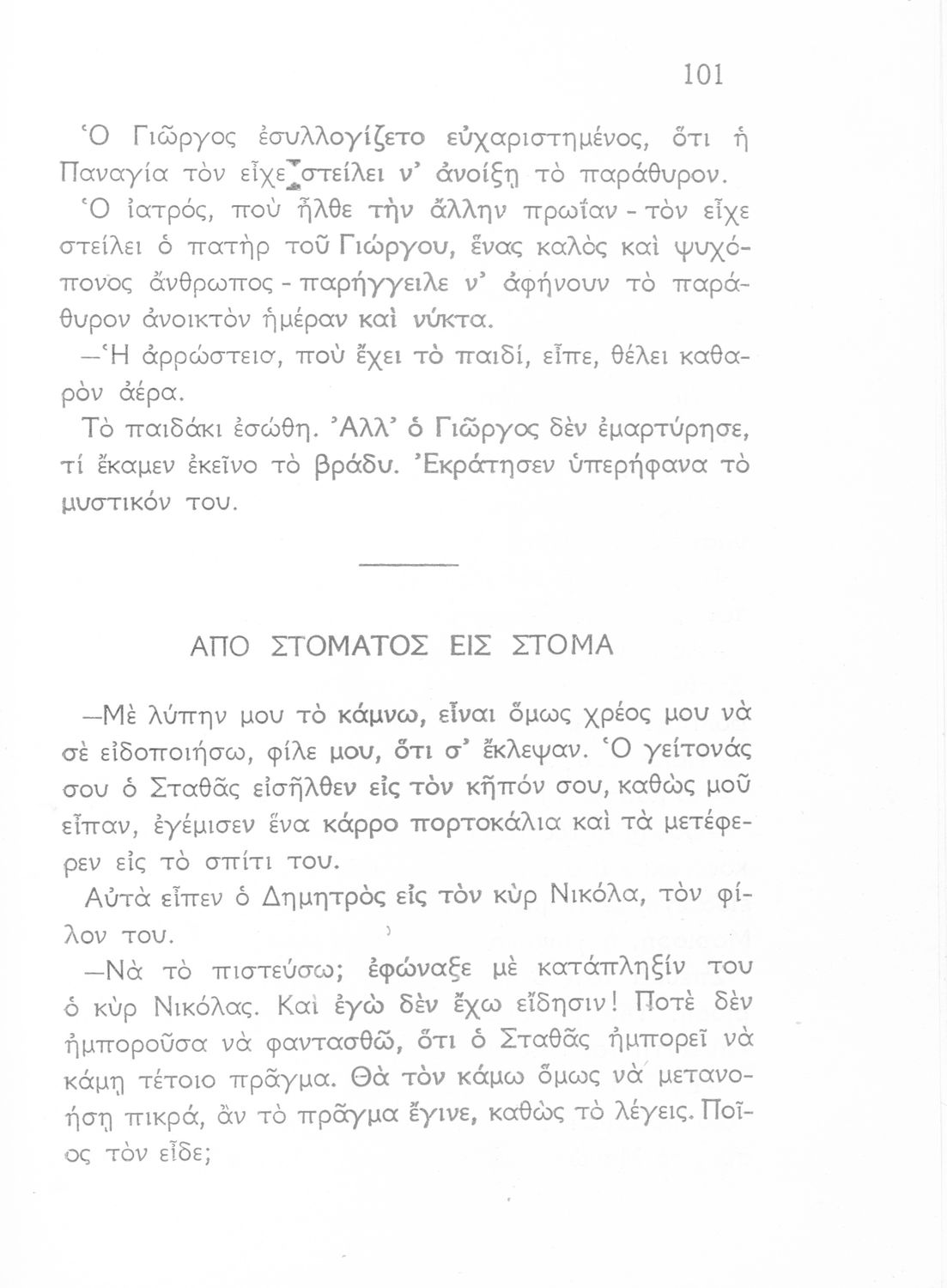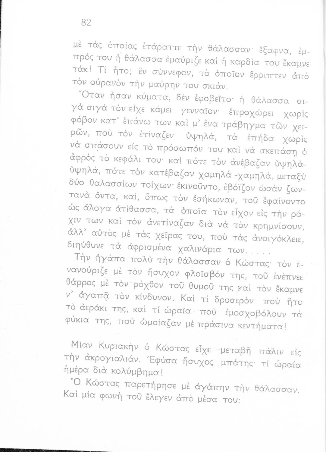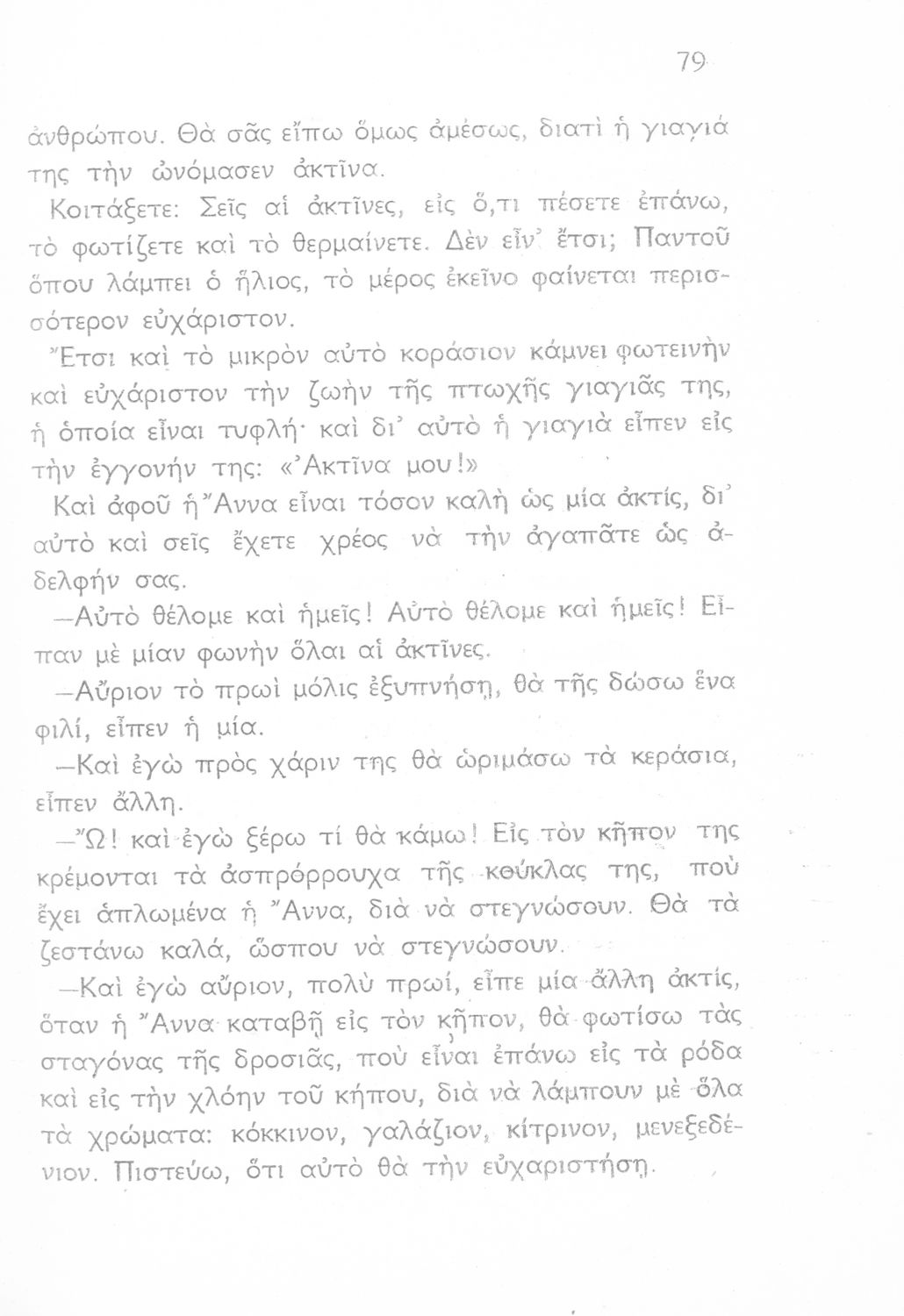 Αναγνωστικό Δ΄ Δημοτικού που περιλαμβάνει θέματα από την θρησκευτική, οικογενειακή και σχολική ζωή του παιδιού, την ελληνική μυθολογία και ιστορία και τη ζωή των ζώων.