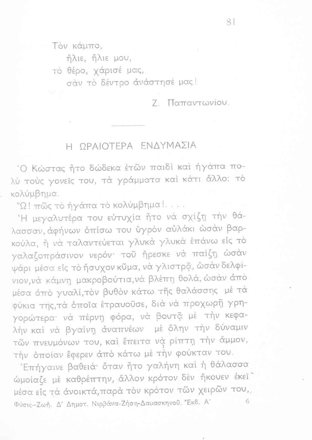 Τίτλος: Φύσις και ζωή. Αναγνωστικόν διά την τετάρτην τάξιν του Δημοτικού Σχολείου