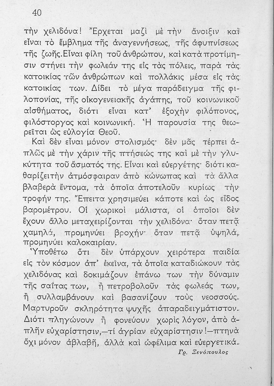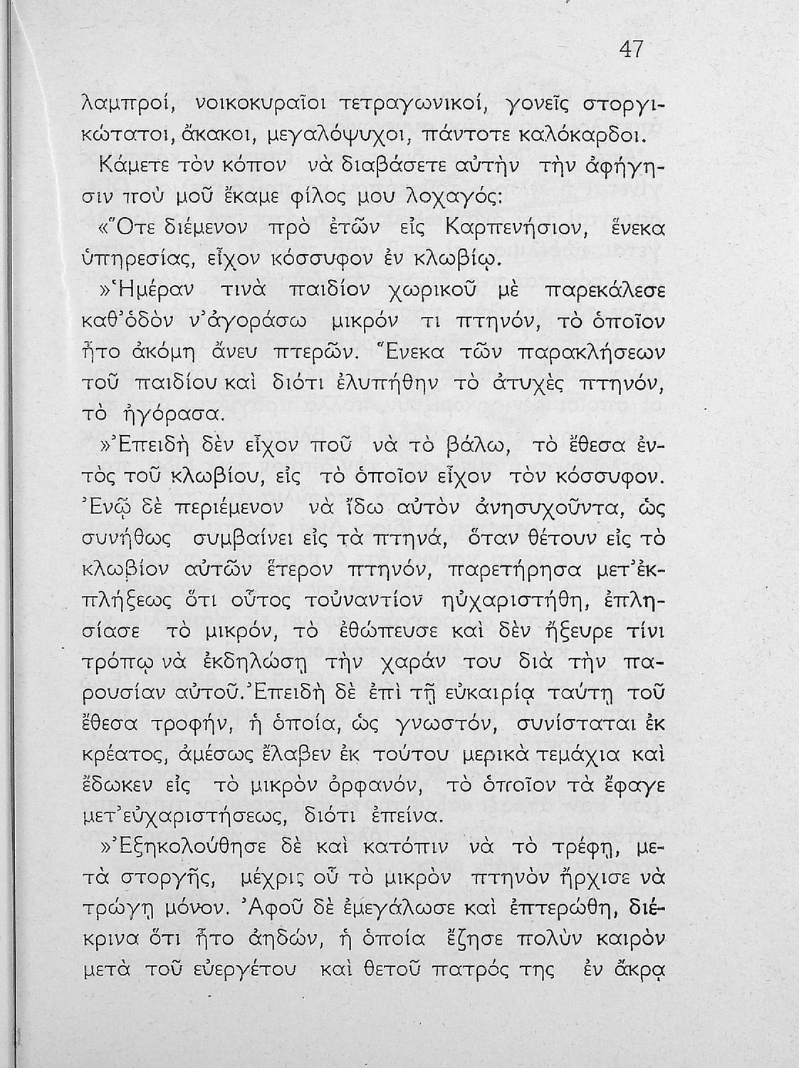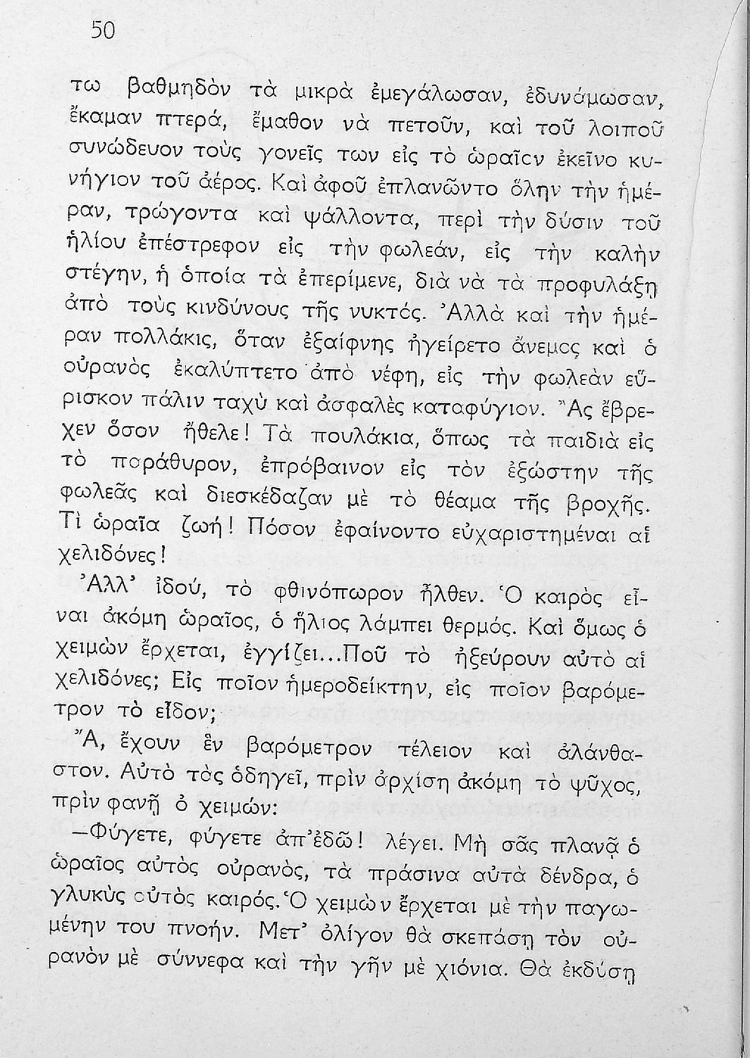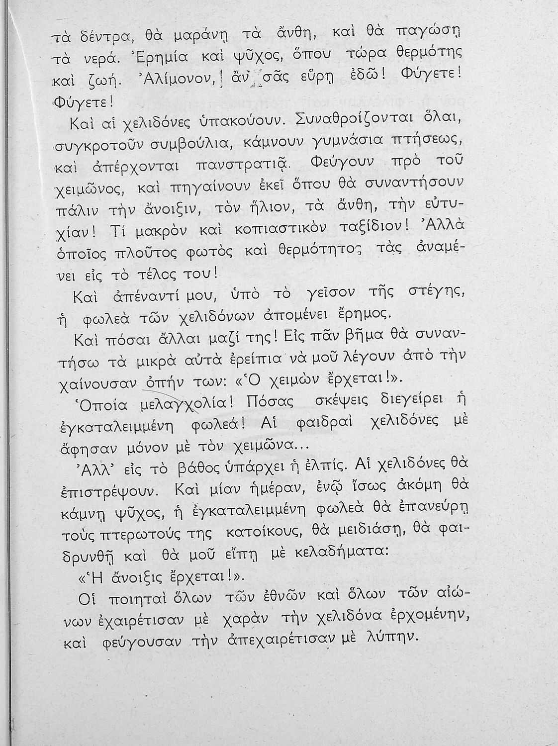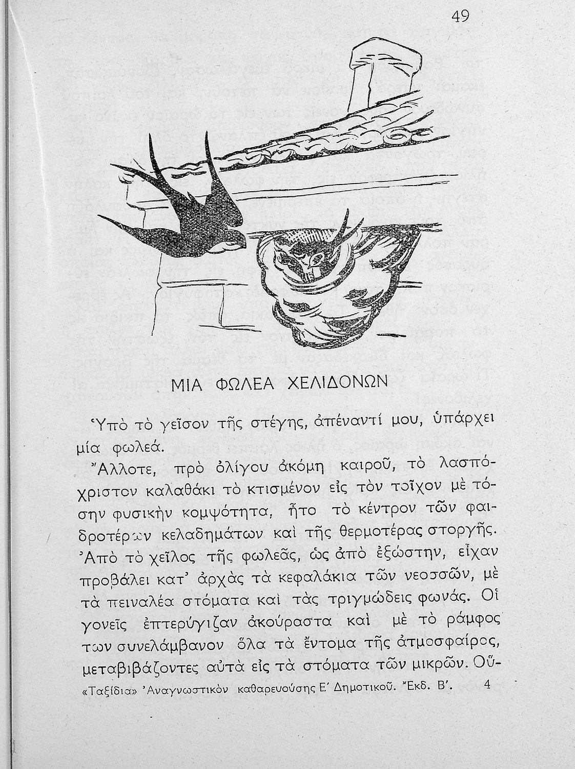 Βαθμίδα εκπαίδευσης: Πρωτοβάθμια Τάξη: Ε' Δημοτικού Μάθημα: Νέα Ελληνικά Γλώσσα: Καθαρεύουσα Παρουσίαση περιεχομένου: Αναγνωστικό Ε΄ Δημοτικού που περιλαμβάνει κείμενα από την ελληνική μυθολογία, τη θρησκευτική παράδοση, τον κόσμο των πτηνών και των ζώων, την κοινωνική και επαγγελματική ζωή, την ελληνική γη και τις μεγάλες ανακαλύψεις. |
