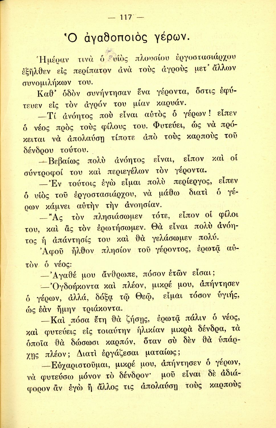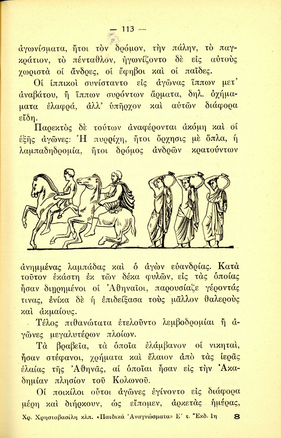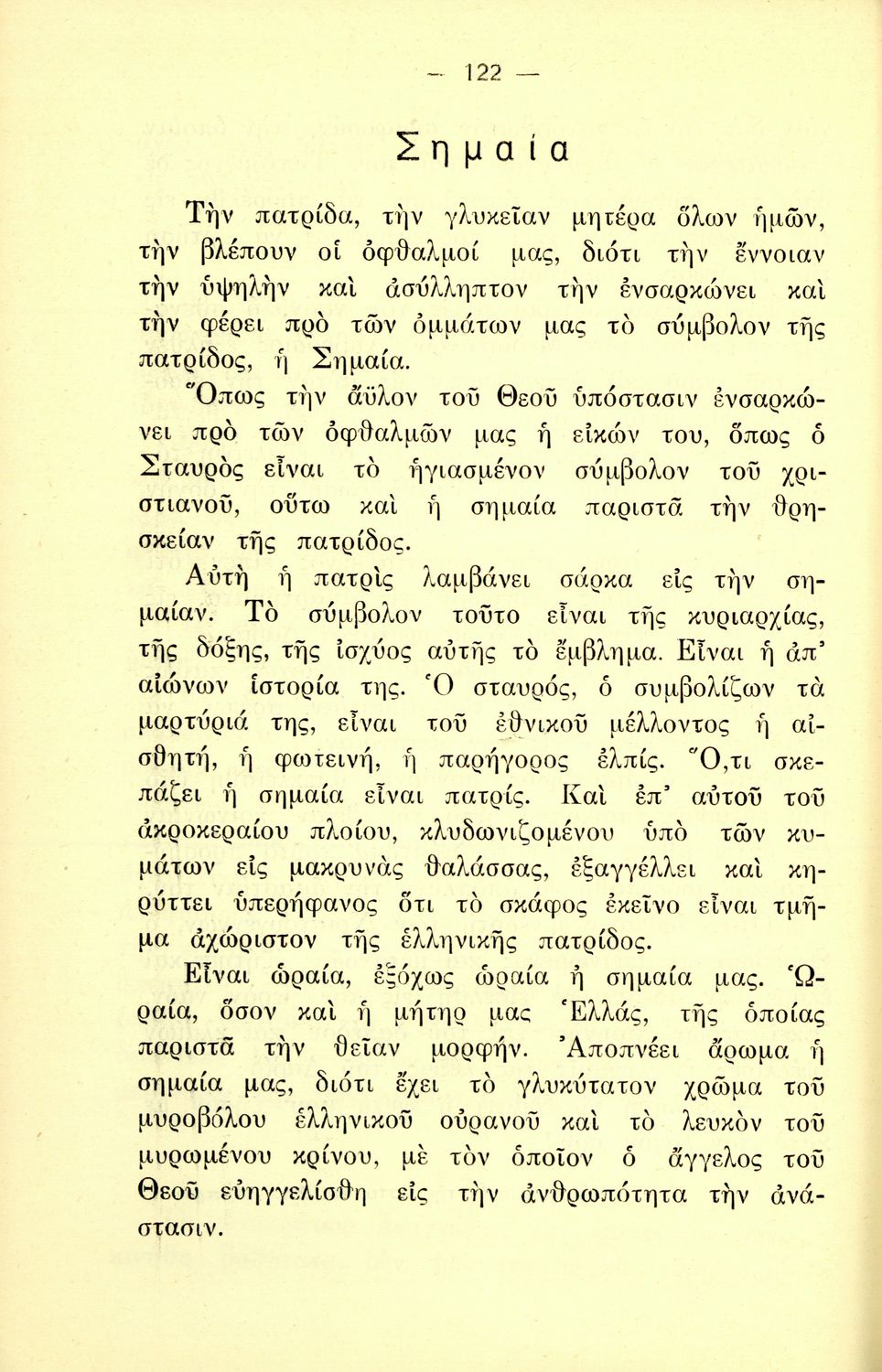 Βαθμίδα εκπαίδευσης: Πρωτοβάθμια Τάξη: Ε' Δημοτικού Μάθημα: Νέα Ελληνικά Γλώσσα: Καθαρεύουσα Παρουσίαση περιεχομένου: Αναγνωστικό για τη Ε' Δημοτικού που περιέχει ποιήματα και πεζά με ιστορικό και θρησκευτικό περιεχόμενο. |