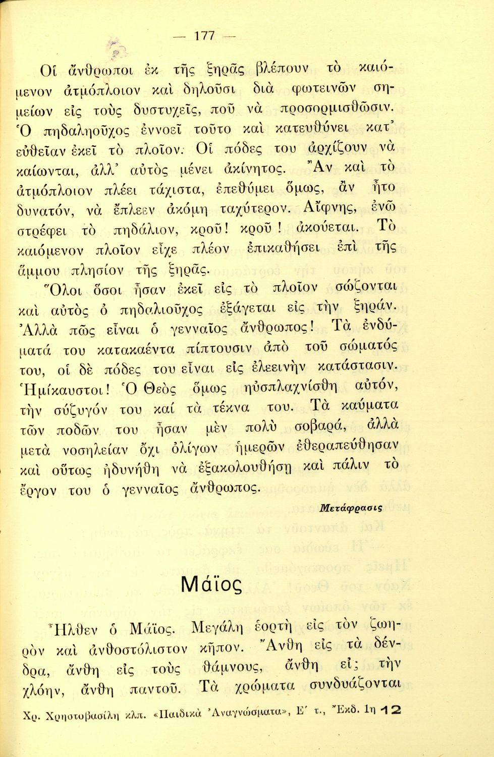 Παιδικά αναγνώσματα. Αναγνωστικόν διά την Ε΄ τάξιν του Δημοτικού Σχολείου