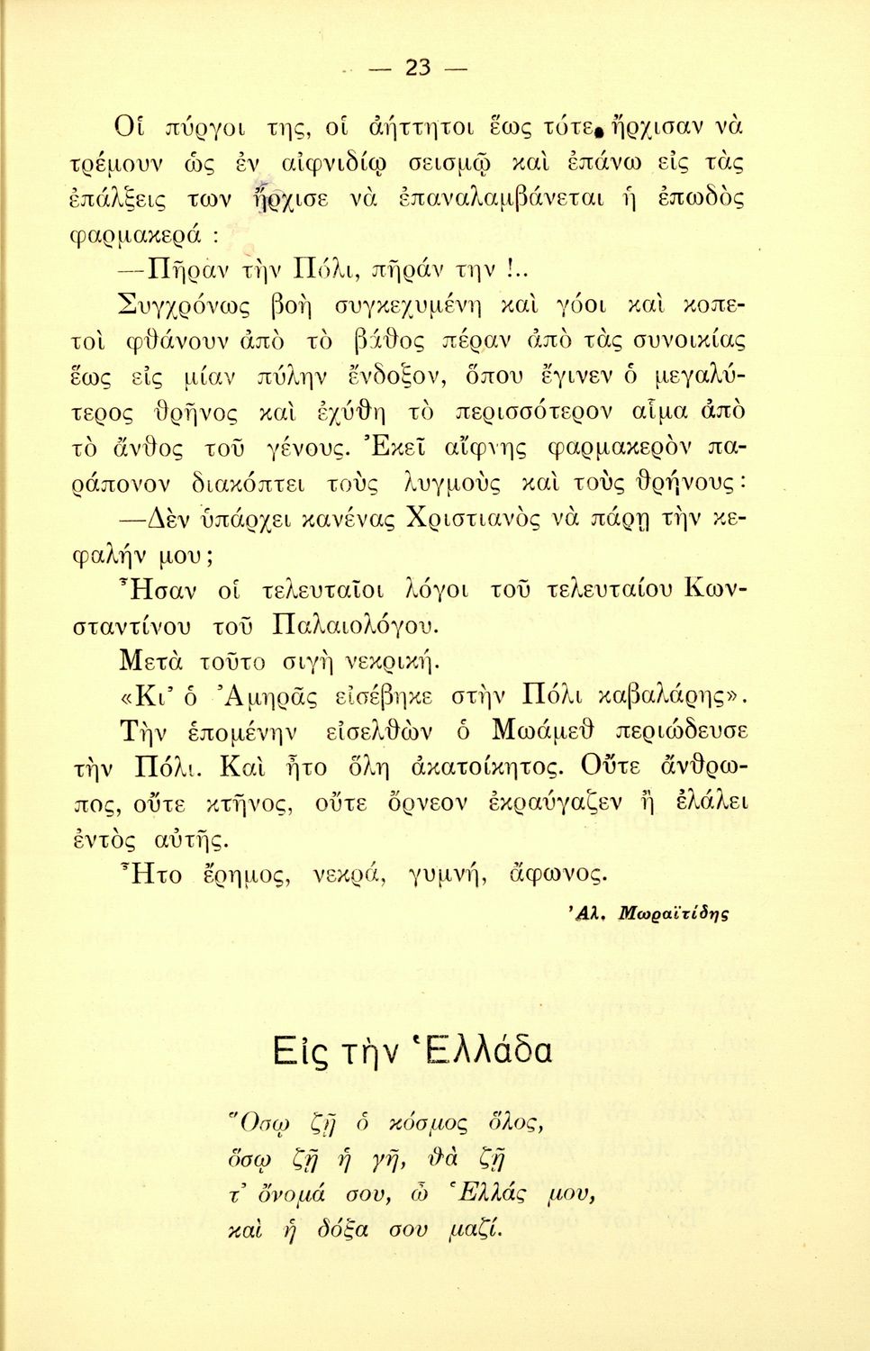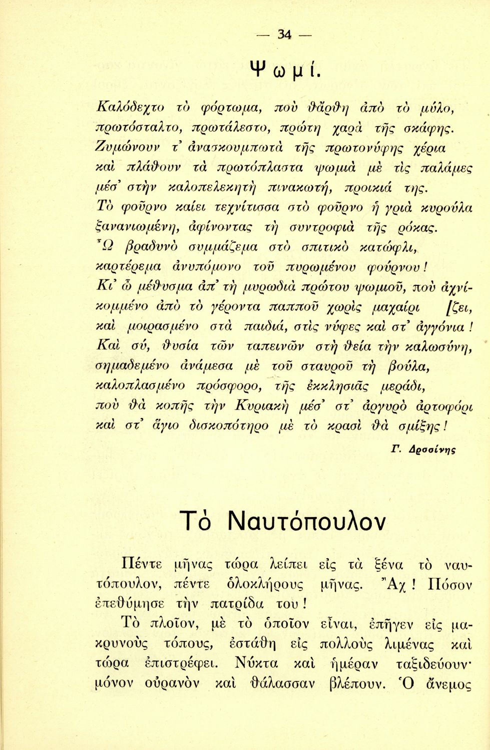 Βαθμίδα εκπαίδευσης: Πρωτοβάθμια Τάξη: Ε' Δημοτικού Μάθημα: Νέα Ελληνικά Γλώσσα: Καθαρεύουσα Παρουσίαση περιεχομένου: Αναγνωστικό για τη Ε' Δημοτικού που περιέχει ποιήματα και πεζά με ιστορικό και θρησκευτικό περιεχόμενο. |