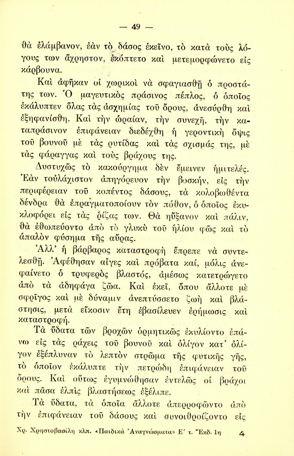Βαθμίδα εκπαίδευσης: Πρωτοβάθμια Τάξη: Ε' Δημοτικού Μάθημα: Νέα Ελληνικά Γλώσσα: Καθαρεύουσα Παρουσίαση περιεχομένου: Αναγνωστικό για τη Ε' Δημοτικού που περιέχει ποιήματα και πεζά με ιστορικό και θρησκευτικό περιεχόμενο. |