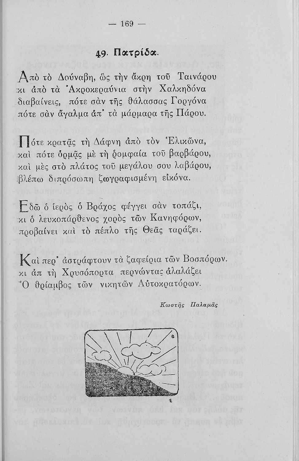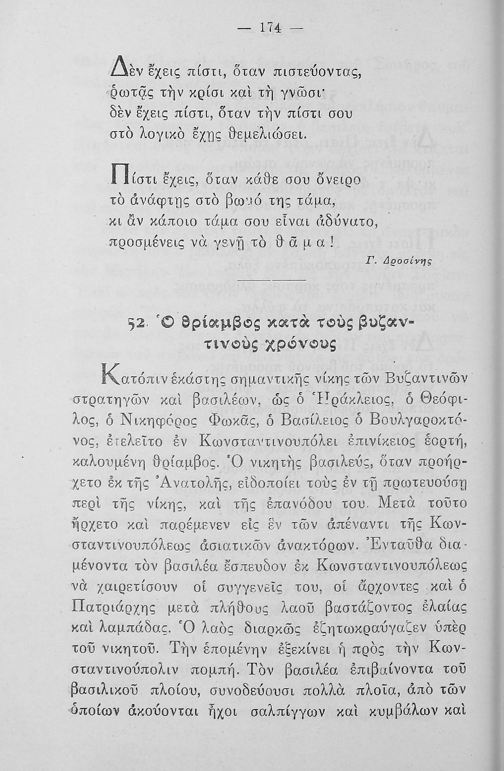 Αναγνωστικό Ε΄ Δημοτικού που αποτελείται από πεζά γραμμένα σε καθαρεύουσα και ποιήματα σε δημοτική εμπνευσμένα από την οικογένεια, τη θρησκεία, την μυθολογία και ιστορία, την υγιεινή, την πατρίδα, την ελληνική φύση, την αγάπη για τα ζώα, τις καθημερινές ασχολίες και επαγγέλματα και τις ηθικές αρετές.