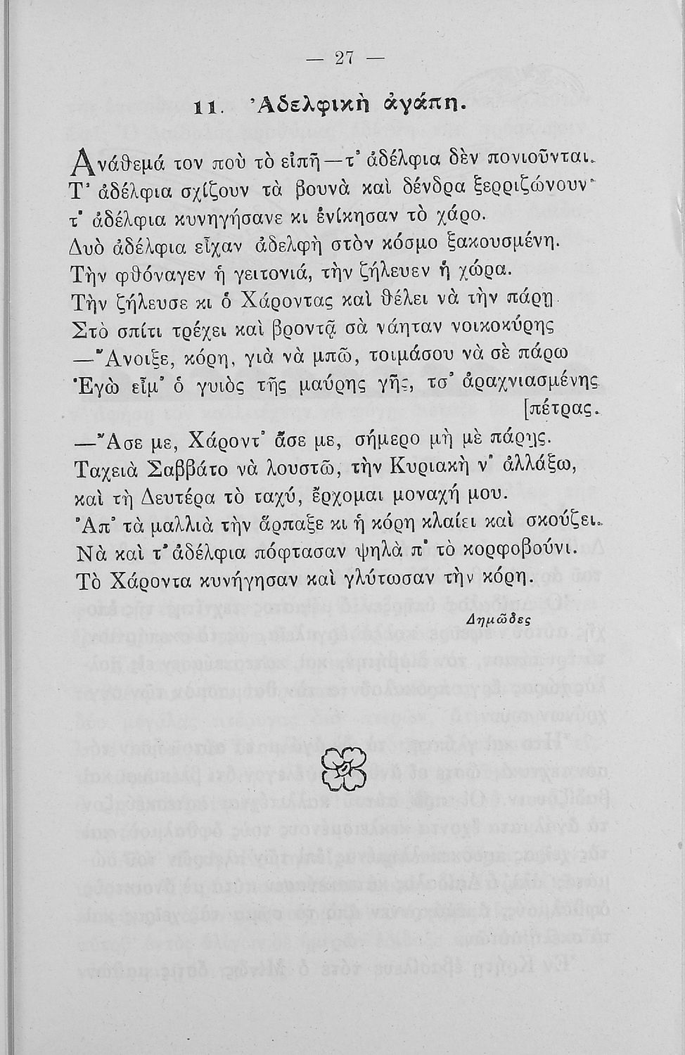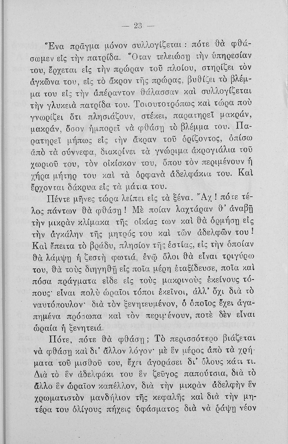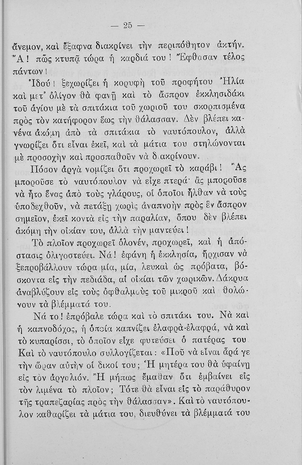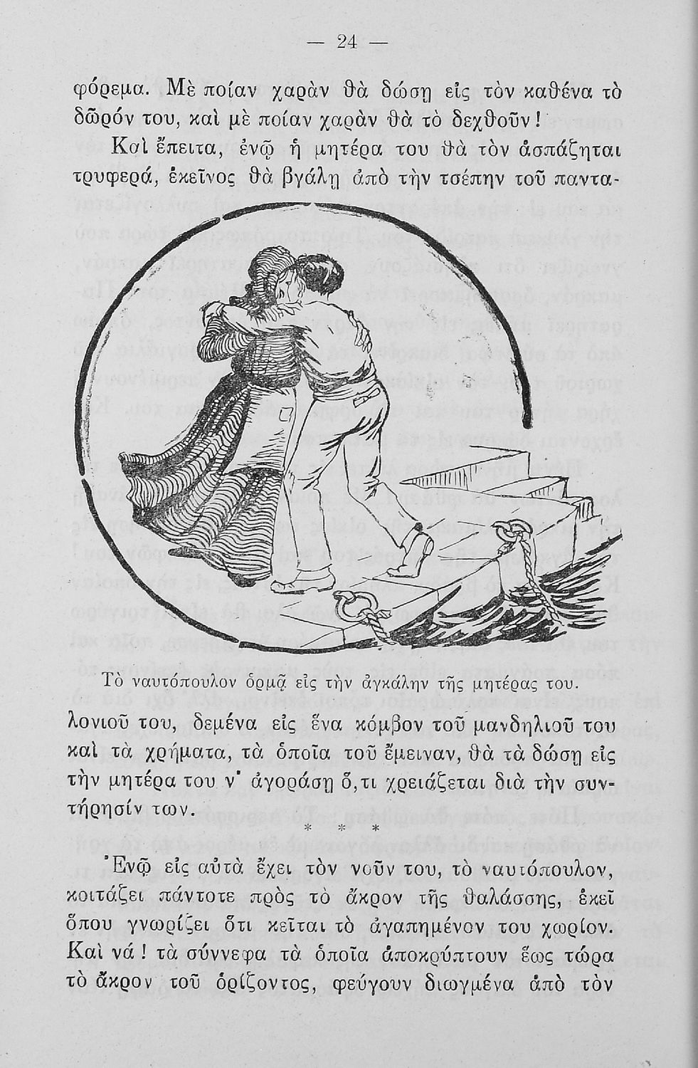 Αναγνωστικό Ε΄ Δημοτικού που αποτελείται από πεζά γραμμένα σε καθαρεύουσα και ποιήματα σε δημοτική εμπνευσμένα από την οικογένεια, τη θρησκεία, την μυθολογία και ιστορία, την υγιεινή, την πατρίδα, την ελληνική