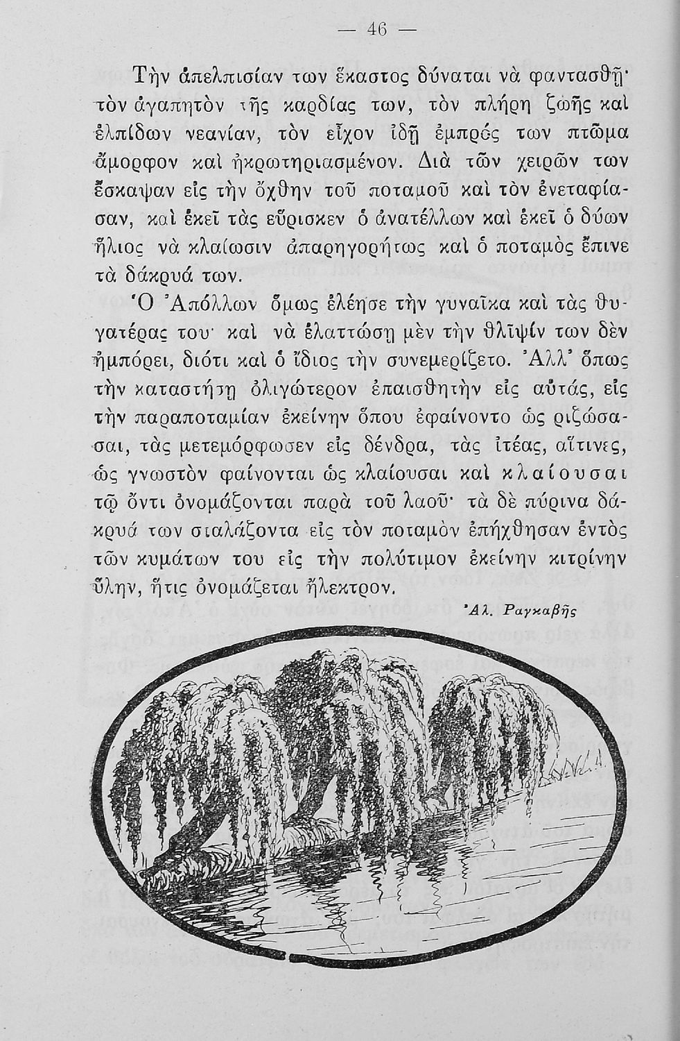 Αναγνωστικό Ε΄ Δημοτικού που αποτελείται από πεζά γραμμένα σε καθαρεύουσα και ποιήματα σε δημοτική εμπνευσμένα από την οικογένεια, τη θρησκεία, την μυθολογία και ιστορία, την υγιεινή, την πατρίδα, την ελληνική φύση, την αγάπη για τα ζώα, τις καθημερινές ασχολίες και επαγγέλματα και τις ηθικές αρετές.
