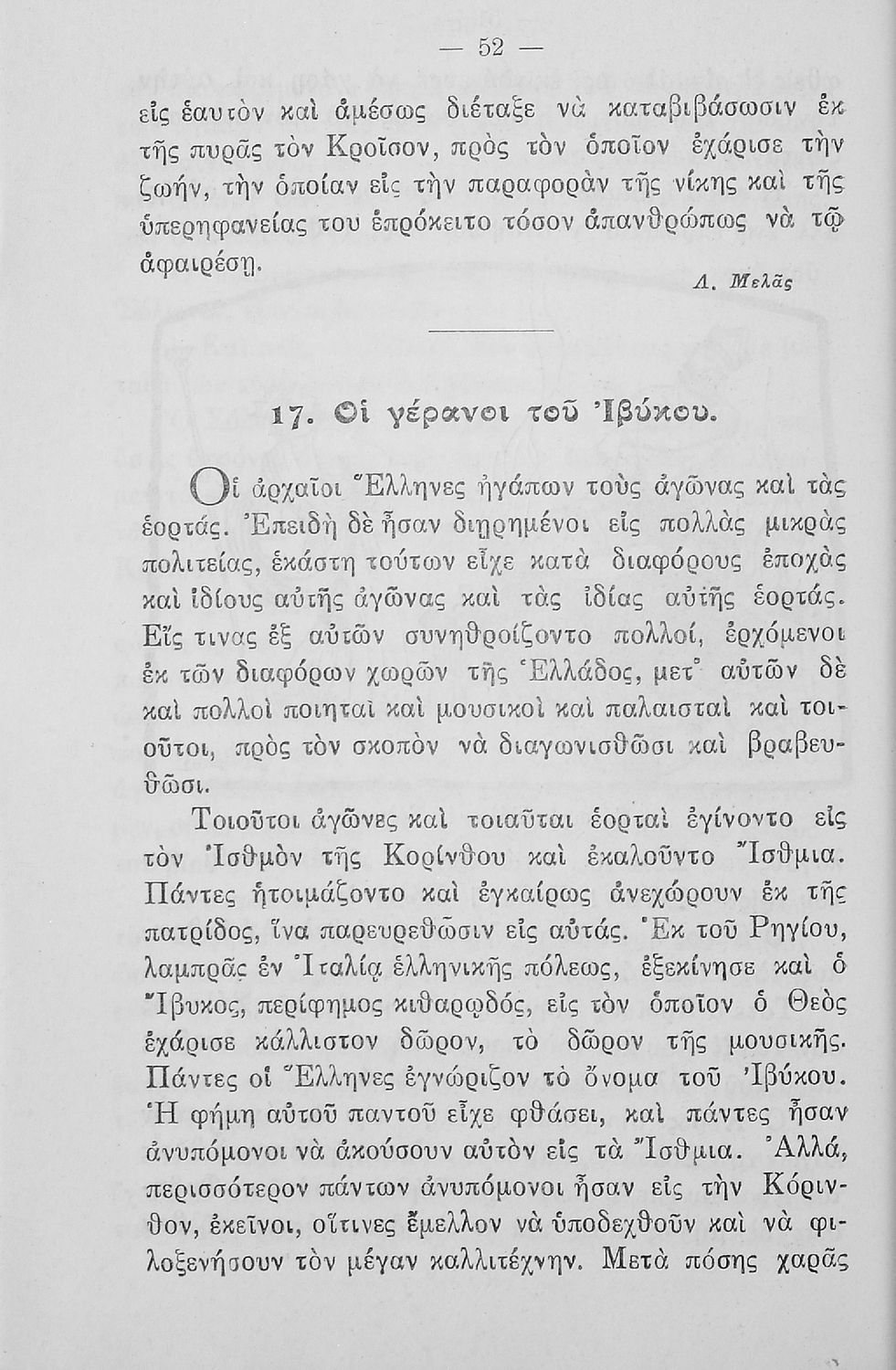 Αναγνωστικό Ε΄ Δημοτικού που αποτελείται από πεζά γραμμένα σε καθαρεύουσα και ποιήματα σε δημοτική εμπνευσμένα από την οικογένεια, τη θρησκεία, την μυθολογία και ιστορία, την υγιεινή, την πατρίδα, την ελληνική