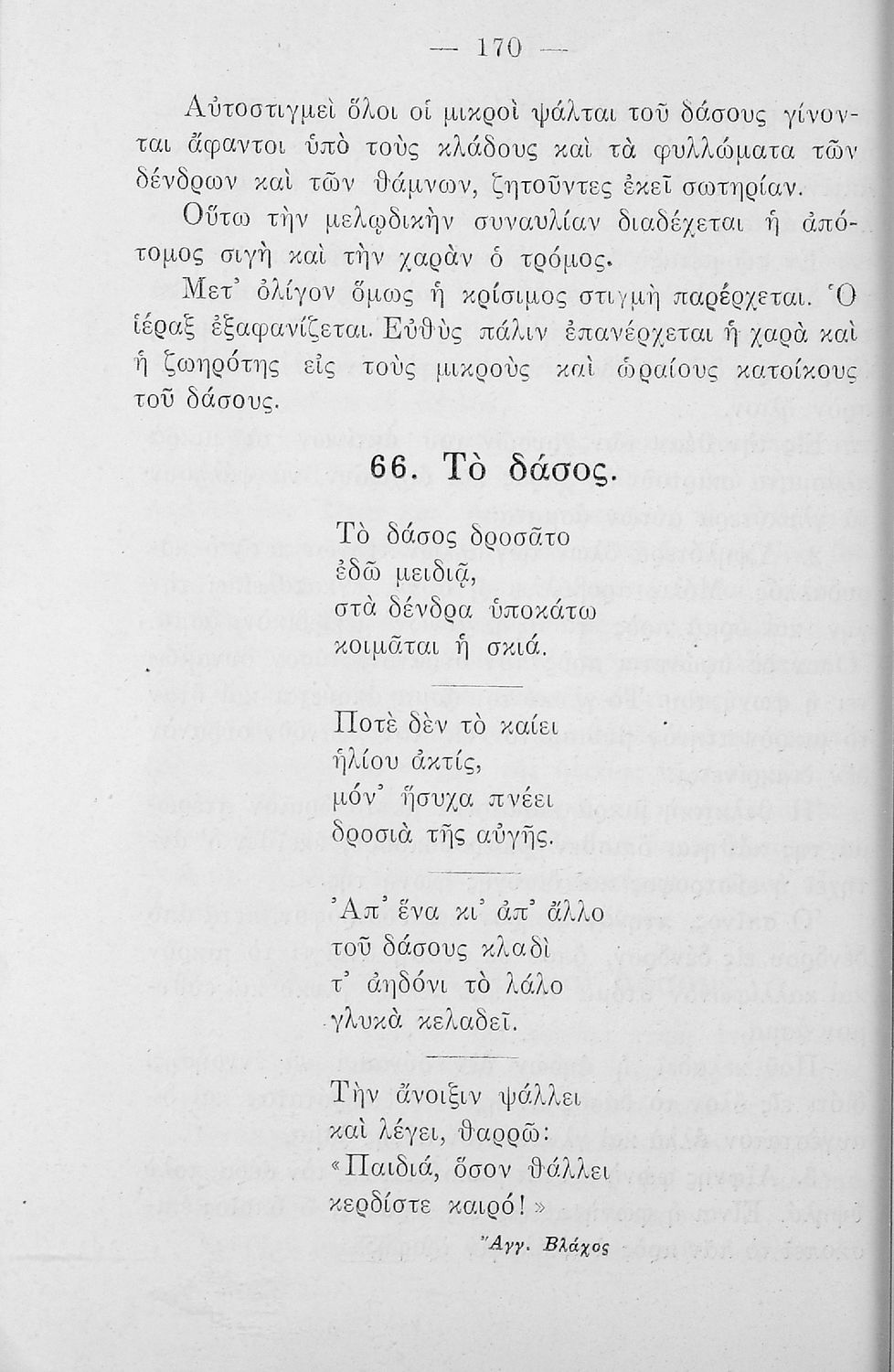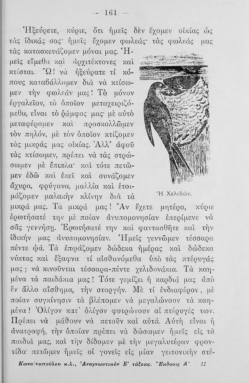 Αναγνωστικό Ε΄ Δημοτικού που περιλαμβάνει πεζογραφήματα εμπνευσμένα από την ελληνική φύση, την αγροτική ζωή και από το τρίπτυχο "Πατρίς- θρησκεία- οικογένεια".