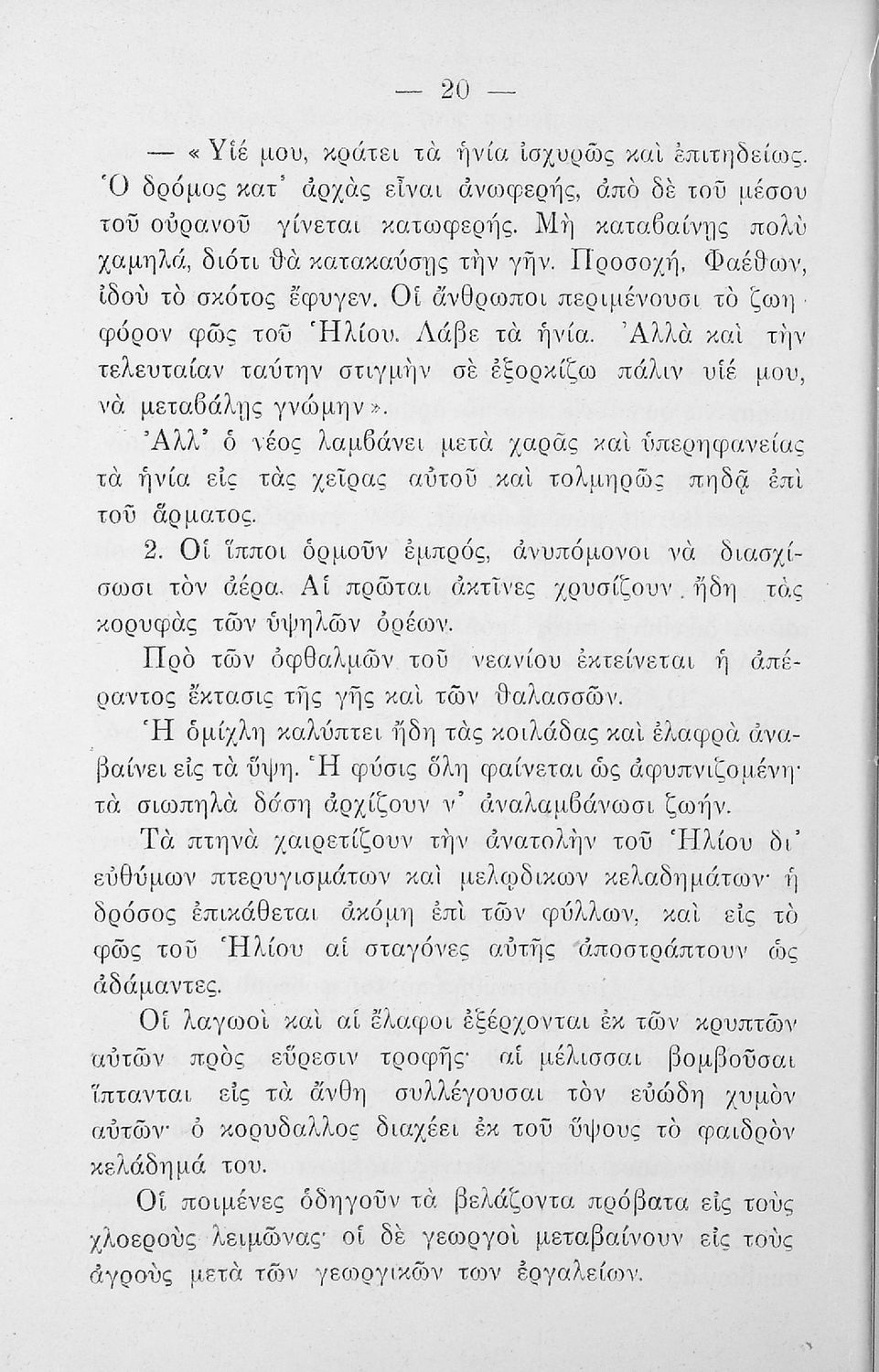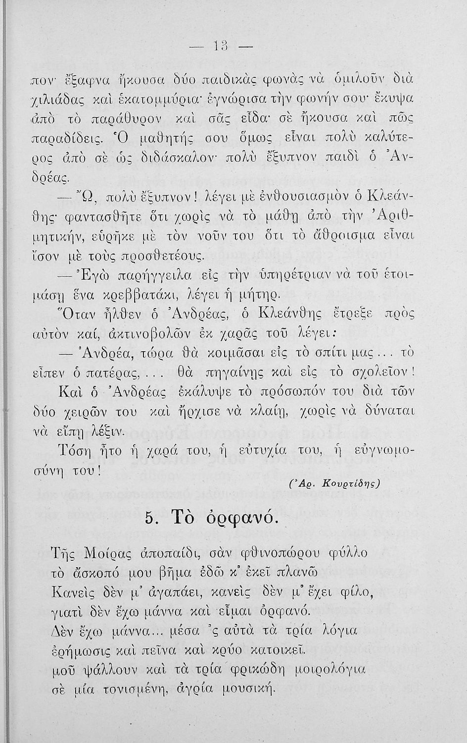 Αναγνωστικό Ε΄ Δημοτικού που περιλαμβάνει πεζογραφήματα εμπνευσμένα από την ελληνική φύση, την αγροτική ζωή και από το τρίπτυχο "Πατρίς- θρησκεία- οικογένεια".