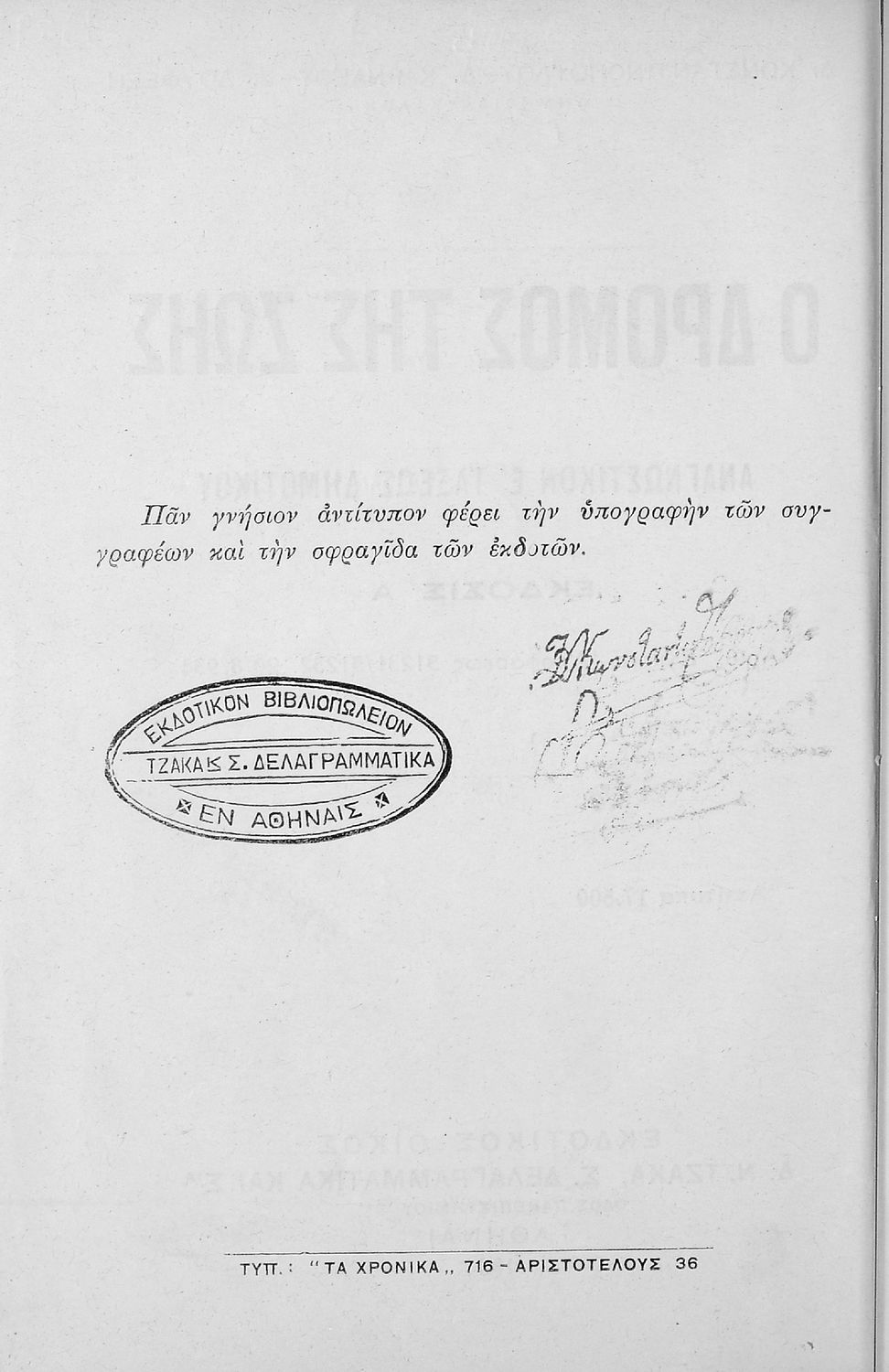 Εκδότης: Δημ. Ν. Τζάκας, Στεφ. Δελαγραμμάτικας