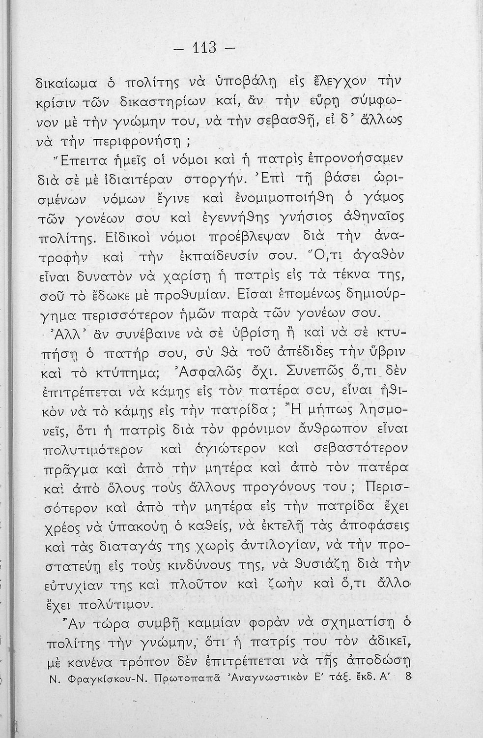 Τίτλος: Αναγνωστικόν της καθαρευούσης δια την Ε΄ τάξιν του Δημοτικού