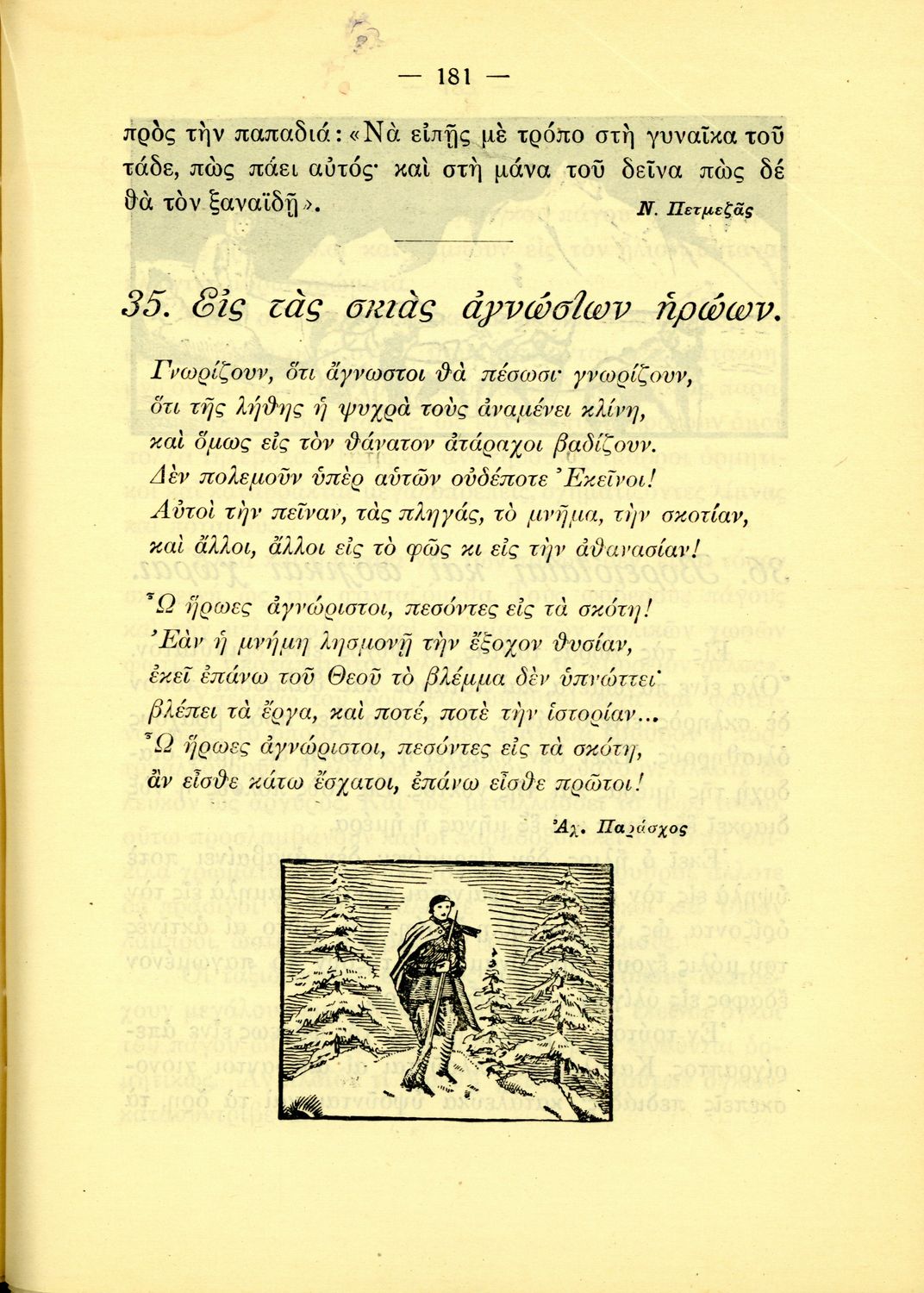 Αναγνωστικό ΣΤ' Δημοτικού που περιλαμβάνει ποιήματα και πεζά με θέματα από την οικογενειακή, κοινωνική και θρησκευτική ζωή των ελλήνων και την ελληνική φύση και ιστορία.