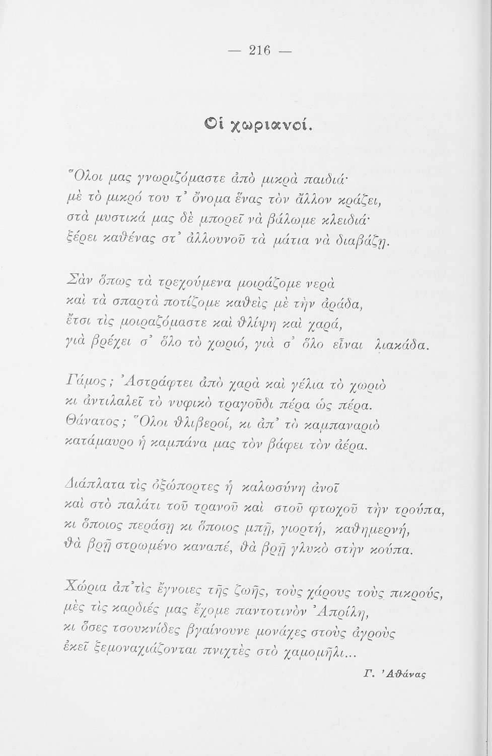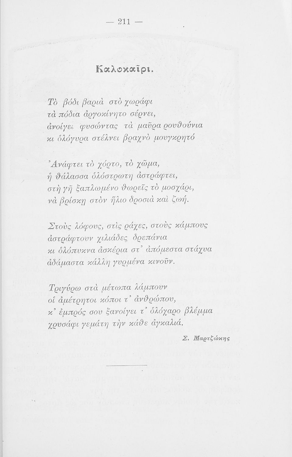 Αναγνωστικό ΣΤ' Δημοτικού που περιλαμβάνει ποιήματα και πεζά με θέματα από την οικογενειακή, κοινωνική και θρησκευτική ζωή των ελλήνων και την ελληνική φύση και ιστορία.