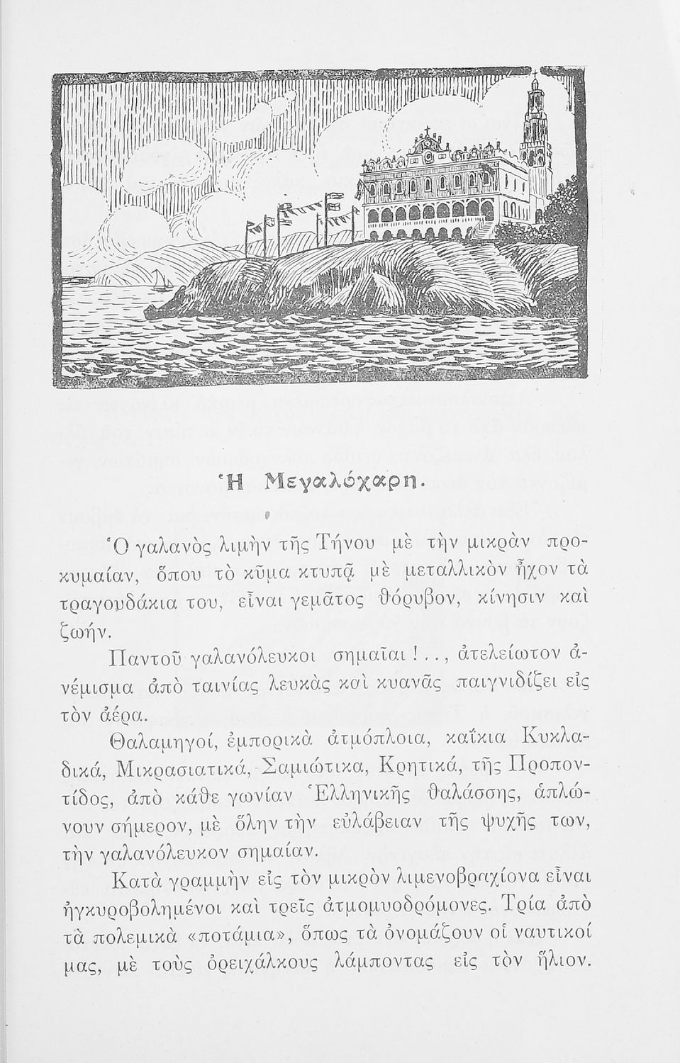 Αναγνωστικό ΣΤ΄ Δημοτικού που περιλαμβάνει ποιήματα και πεζά με θέματα από την οικογενειακή, κοινωνική και θρησκευτική ζωή των Ελλήνων και την ελληνική φύση και ιστορία.