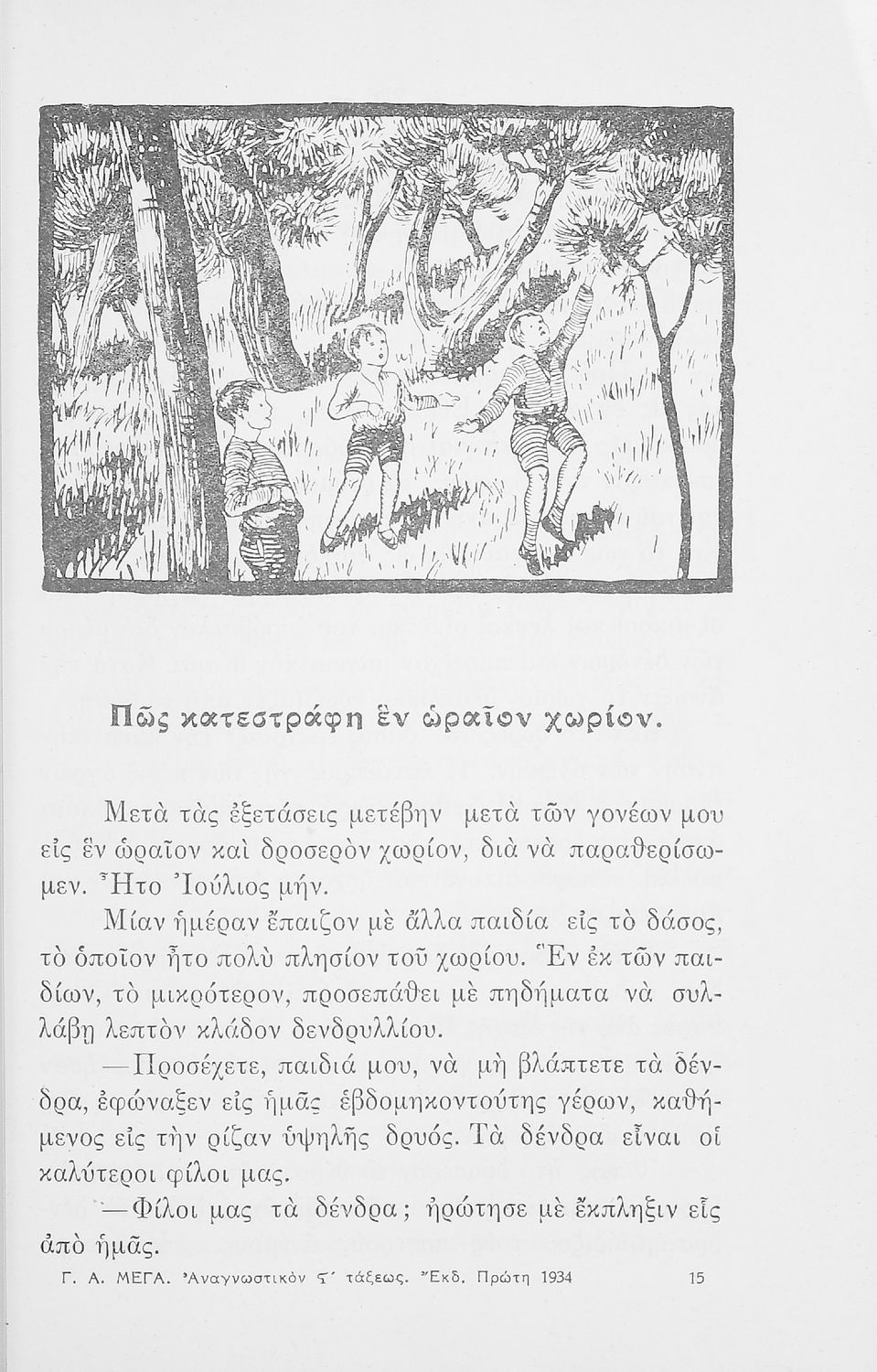 Αναγνωστικό του Δημοτικού. Περιέχει κείμενα της Γαλάτειας Καζαντζάκη. Στο τέλος του βιβλίου υπάρχουν καλλιγραφικά υποδείγματα από το Αναγνωσματάριο του Δημοσθένη Ανδρεάδη.