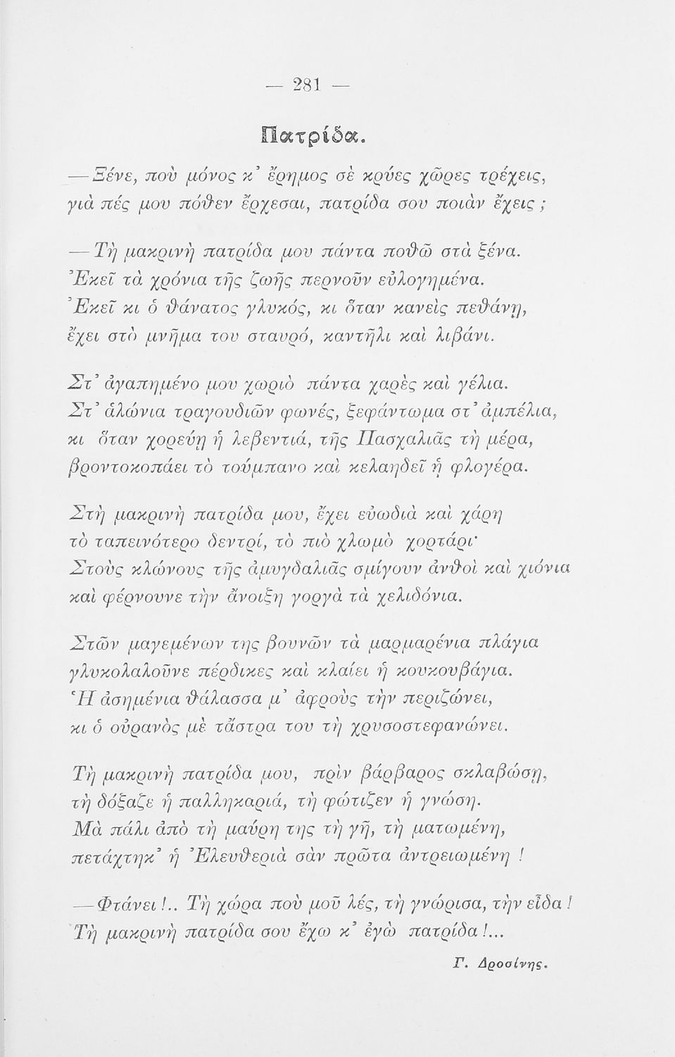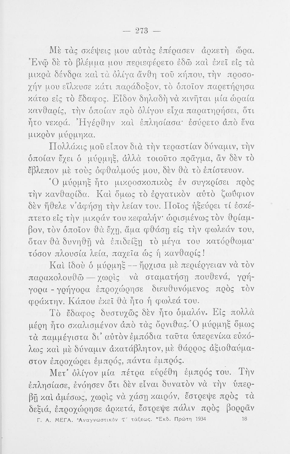 Αναγνωστικό ΣΤ΄ Δημοτικού που περιλαμβάνει κείμενα εμπνευσμένα από την ελληνική φύση, τη θρησκευτική παράδοση, την οικογενειακή και κοινωνική ζωή, τις ασχολίες των κατοίκων, και την αγάπη για το έθνος και τα εθνικά σύμβολα και ιδεώδη.