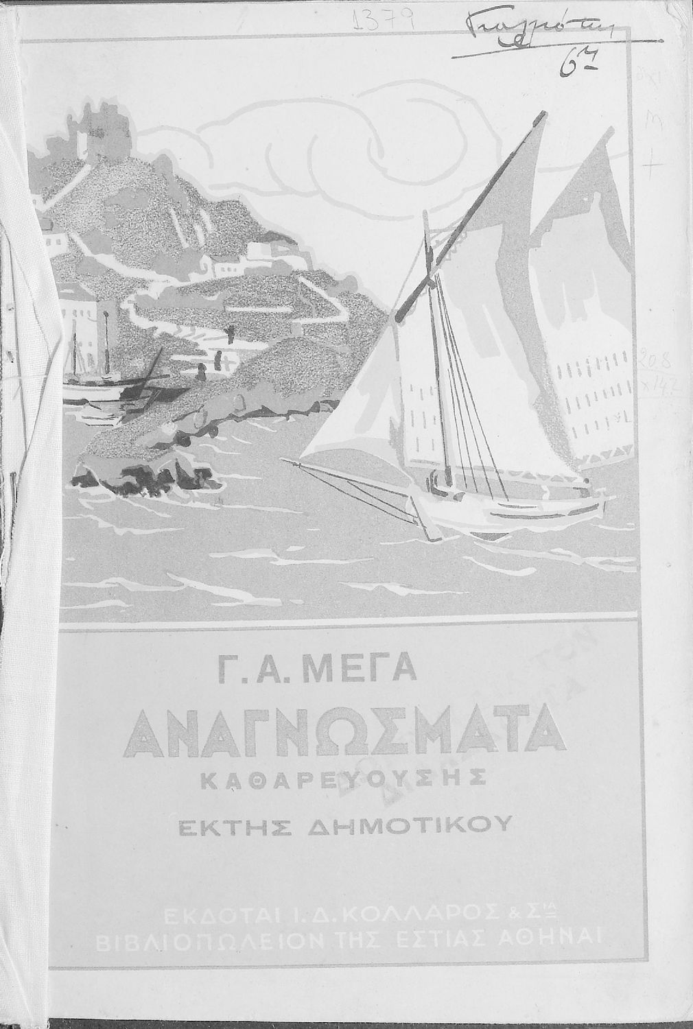 Κωδικός αναγνώρισης: 20-01379 Τίτλος: Αναγνώσματα έκτης Δημοτικού προς μεθοδικήν διδασκαλίαν της καθαρευούσης Συγγραφέας: Γεώργιος Α. Μέγας Εικονογράφος: Σ. Βικτωρίου Μέγεθος και υπόστρωμα: Σχολικό εγχειρίδιο, 20εκ., μαλακό εξώφυλλο, 290 σελίδες. Σκίτσα (ασπρόμαυρα). |