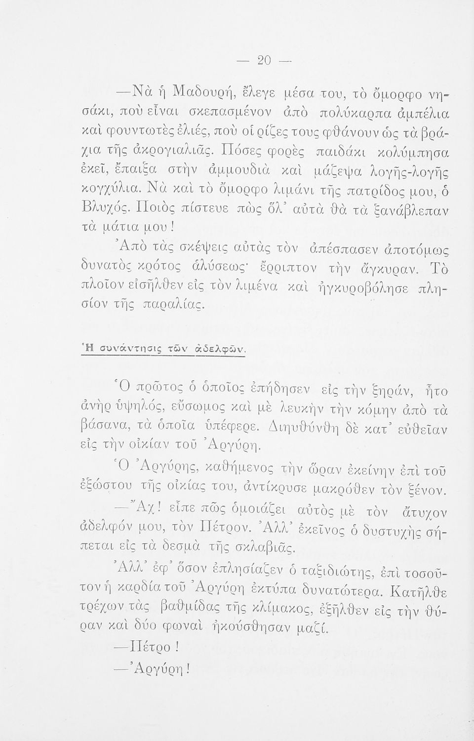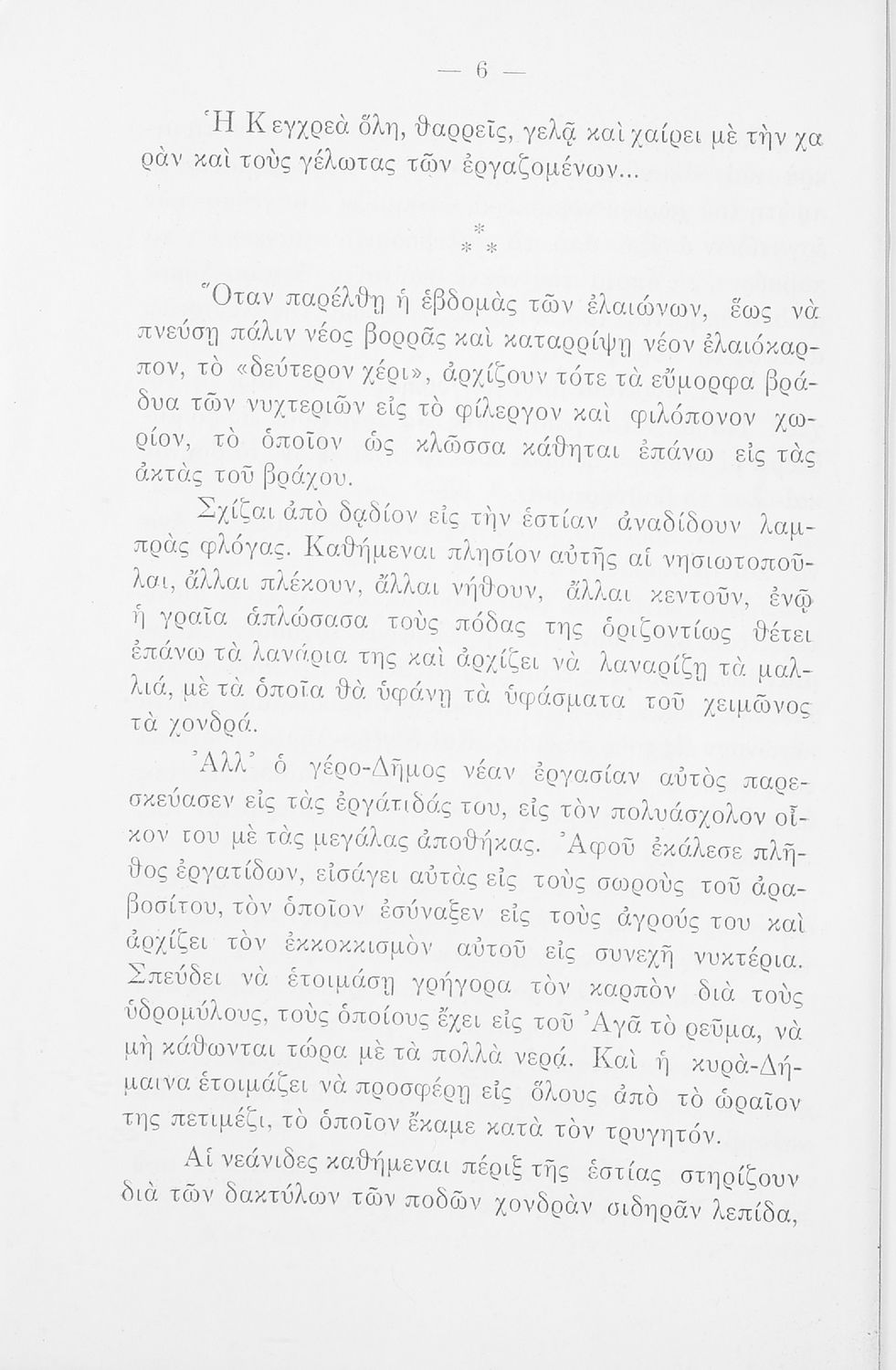 Αναγνωστικό ΣΤ΄ Δημοτικού που περιλαμβάνει κείμενα εμπνευσμένα από την ελληνική φύση, τη θρησκευτική παράδοση, την οικογενειακή και κοινωνική ζωή, τις ασχολίες των κατοίκων, και την αγάπη για το έθνος και τα εθνικά σύμβολα και ιδεώδη.