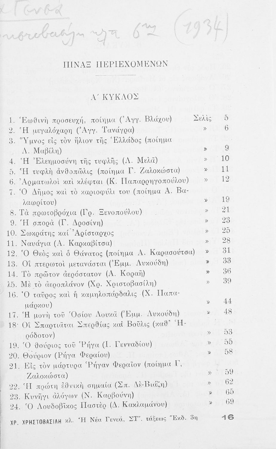 Τίτλος: Η νέα γενεά. Αναγνωστικόν διά την Έκτην τάξιν των Δημοτικών Σχολείων