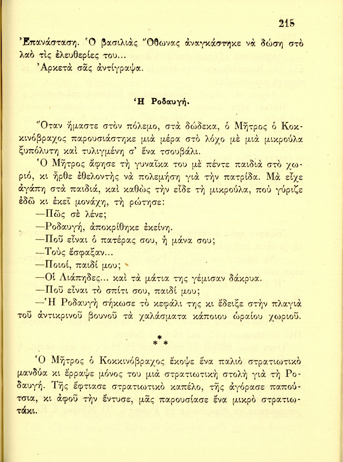 Αναγνωστικό της ΣΤ΄ Δημοτικού που κυκλοφόρησε σε 7.000 αντίτυπα 25 ημέρες πριν την 4η Αυγούστου 1936, οπότε κατά την επόμενη σχολική χρονιά διδάχτηκε ελάχιστα και η έκδοσή του με αυτή την μορφή σταμάτησε.
