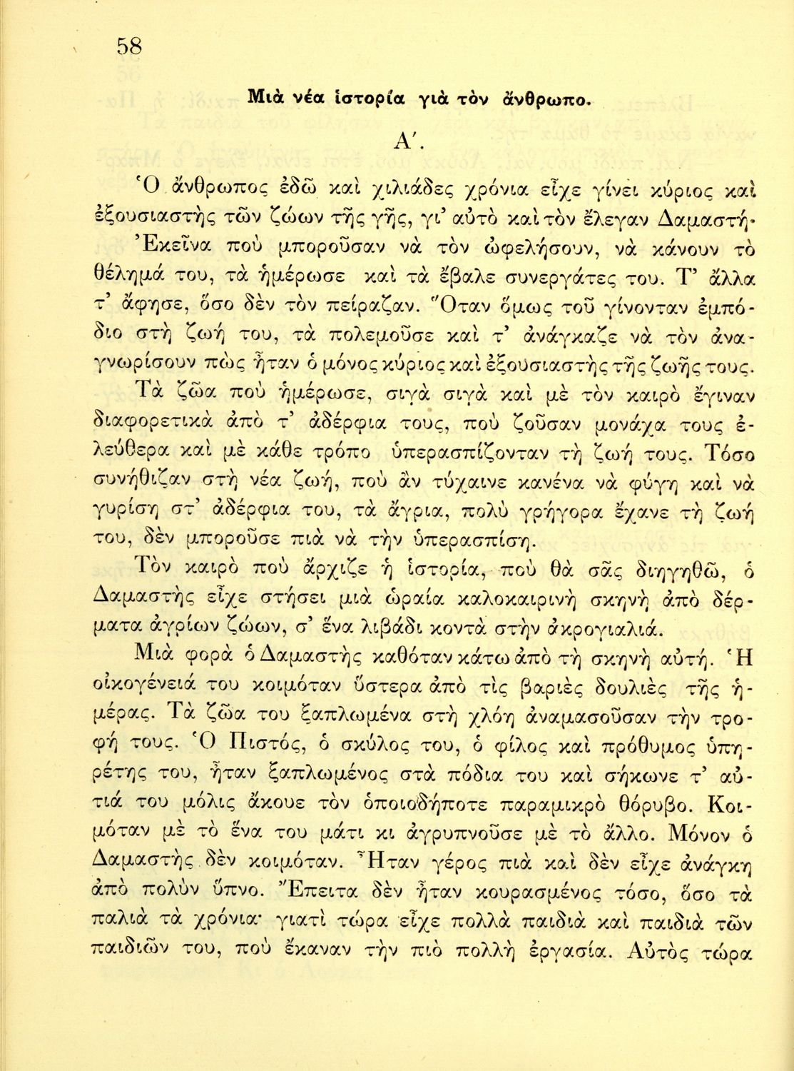 Αναγνωστικό της ΣΤ΄ Δημοτικού που κυκλοφόρησε σε 7.000 αντίτυπα 25 ημέρες πριν την 4η Αυγούστου 1936, οπότε κατά την επόμενη σχολική χρονιά διδάχτηκε ελάχιστα και η έκδοσή του με αυτή την μορφή σταμάτησε.