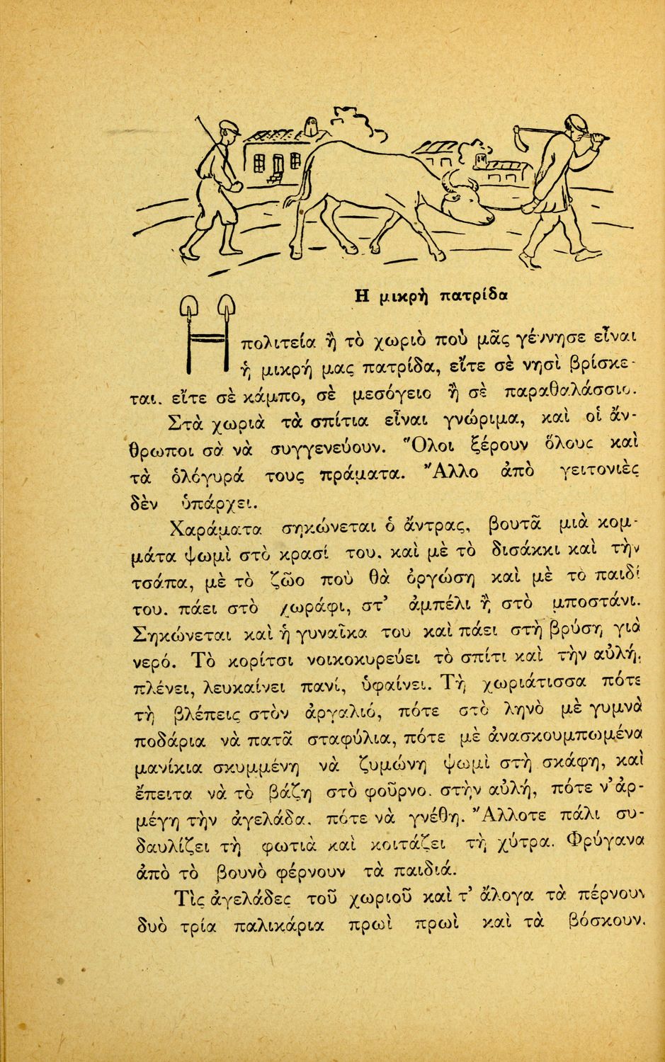 Αναγνωστικό ΣΤ΄ Δημοτικού που περιλαμβάνει πεζά και ποιήματα πατριωτικού περιεχομένου εμπνευσμένα, κατά βάση, από την σύγχρονη ελληνική ιστορία και δη την Ελληνική Επανάσταση.