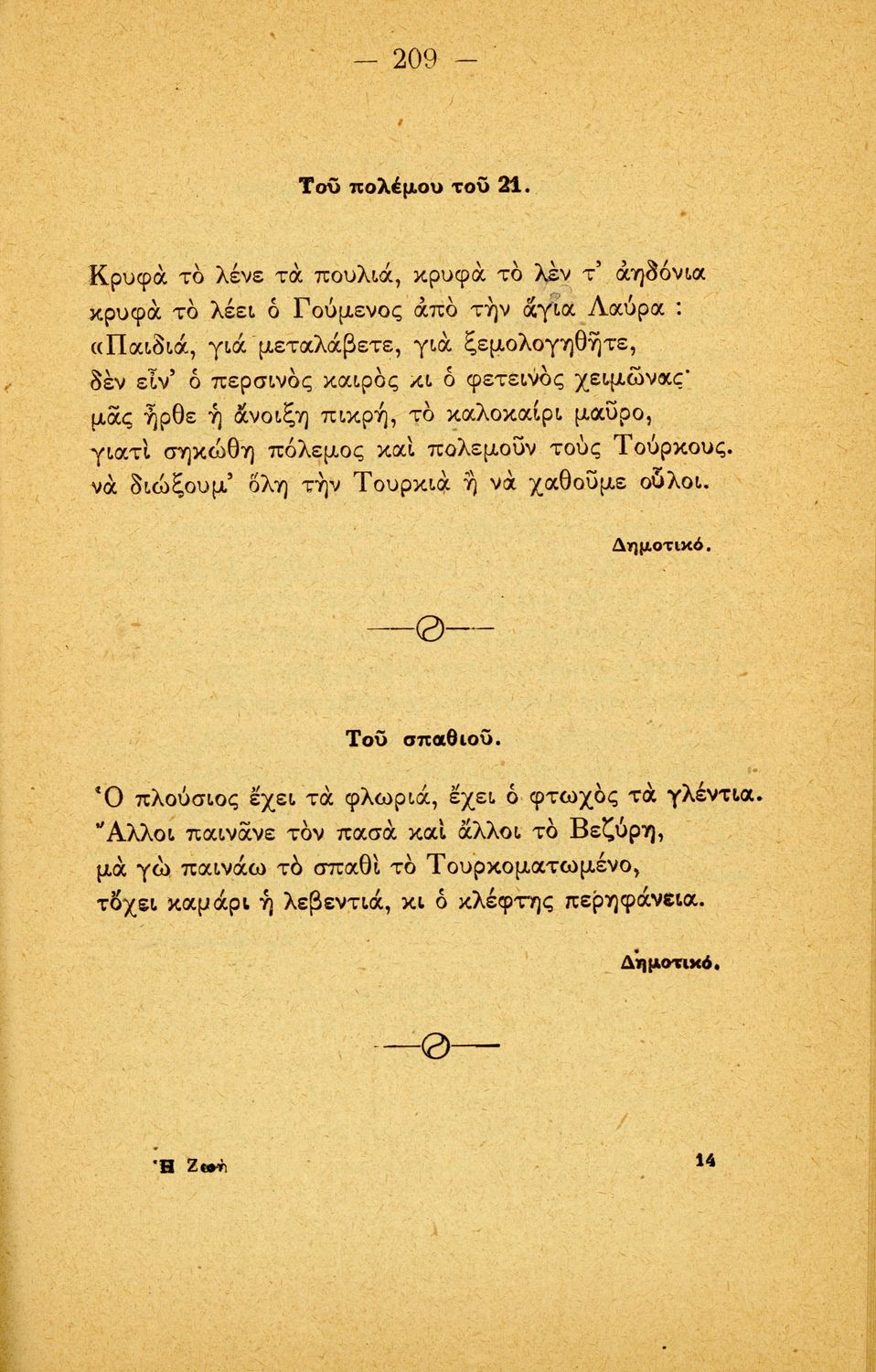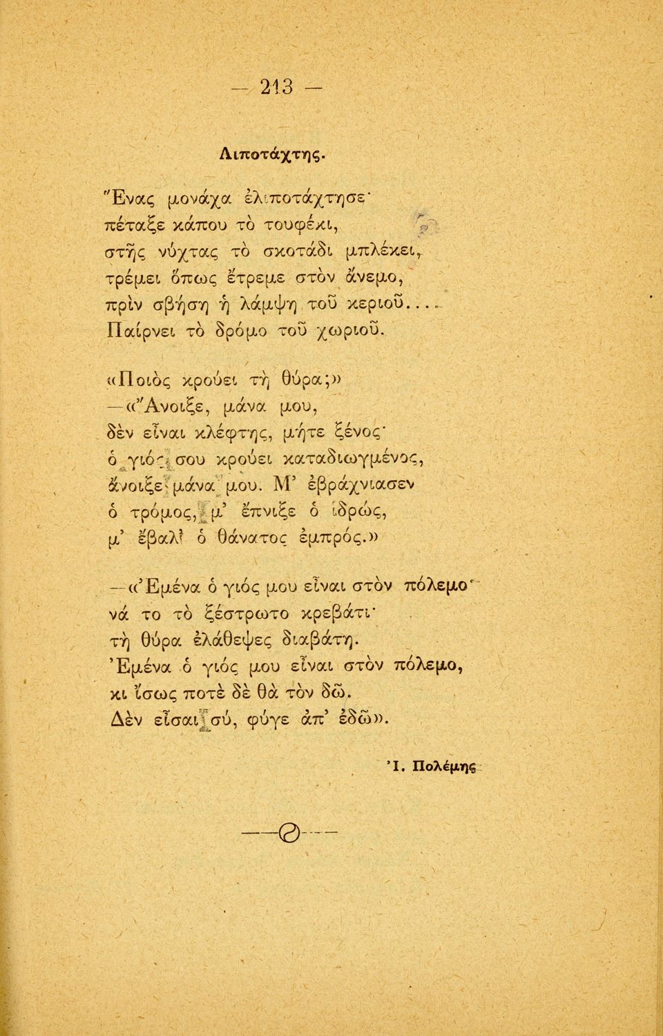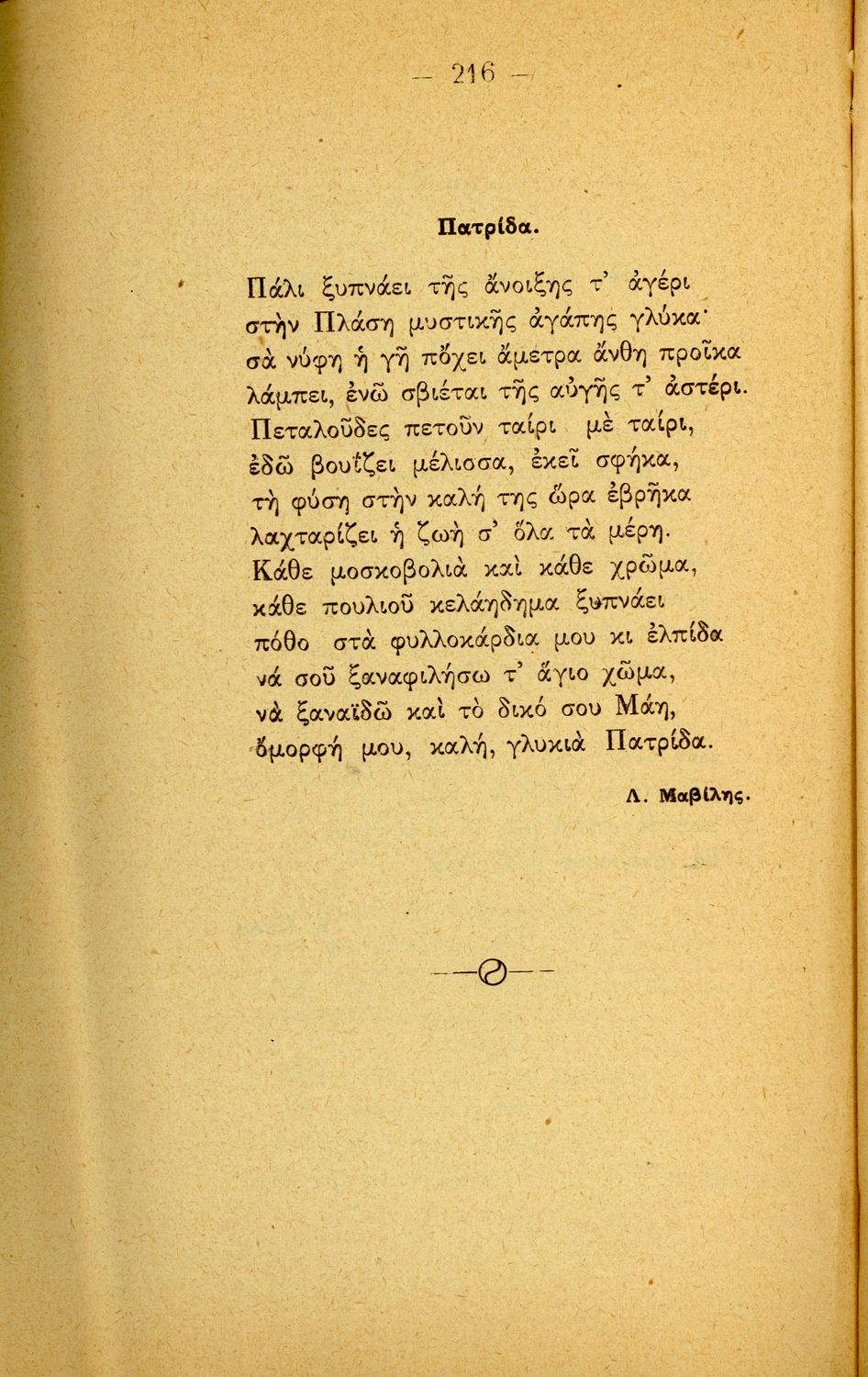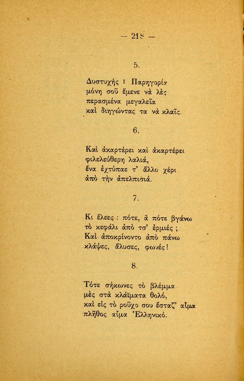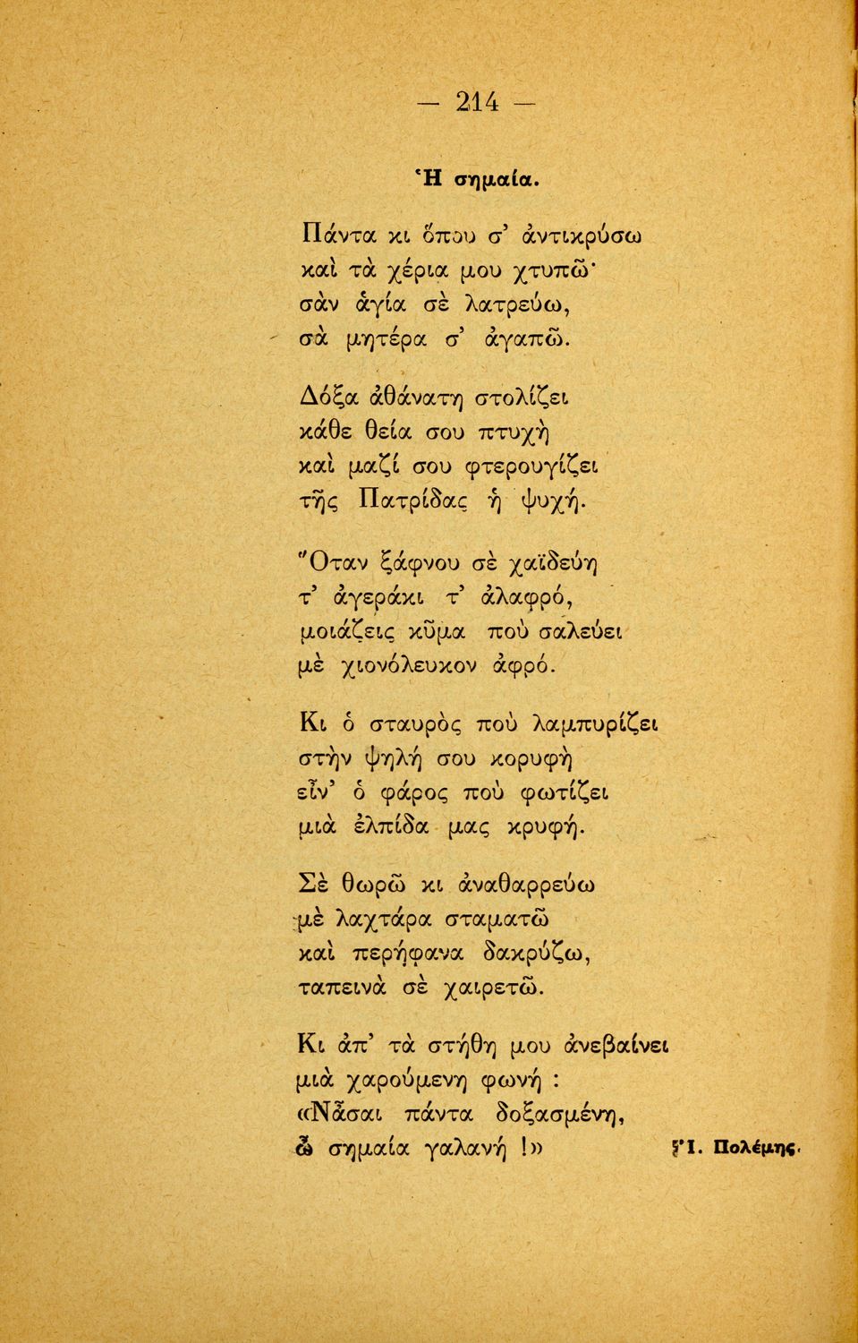 Αναγνωστικό ΣΤ΄ Δημοτικού που περιλαμβάνει πεζά και ποιήματα πατριωτικού περιεχομένου εμπνευσμένα, κατά βάση, από την σύγχρονη ελληνική ιστορία και δη την Ελληνική Επανάσταση.