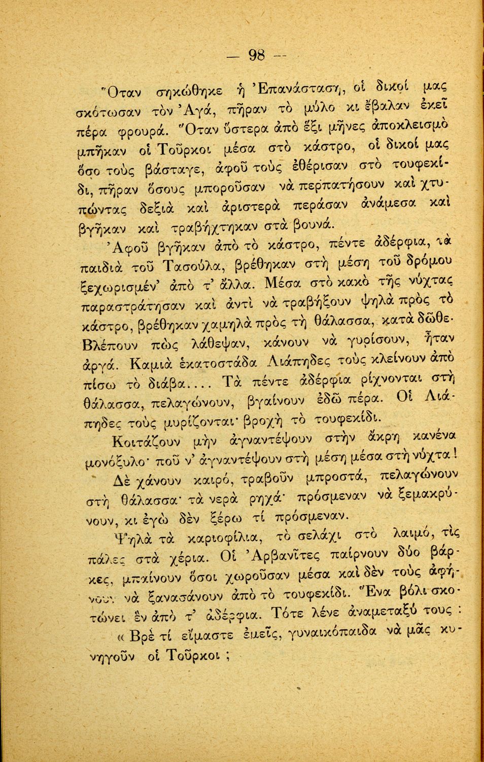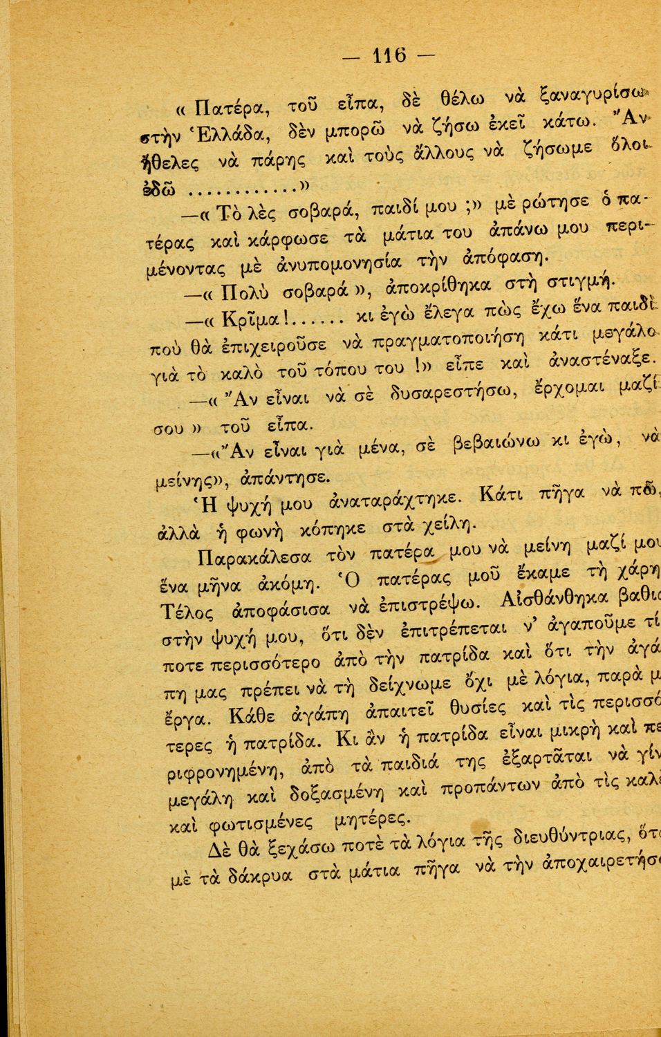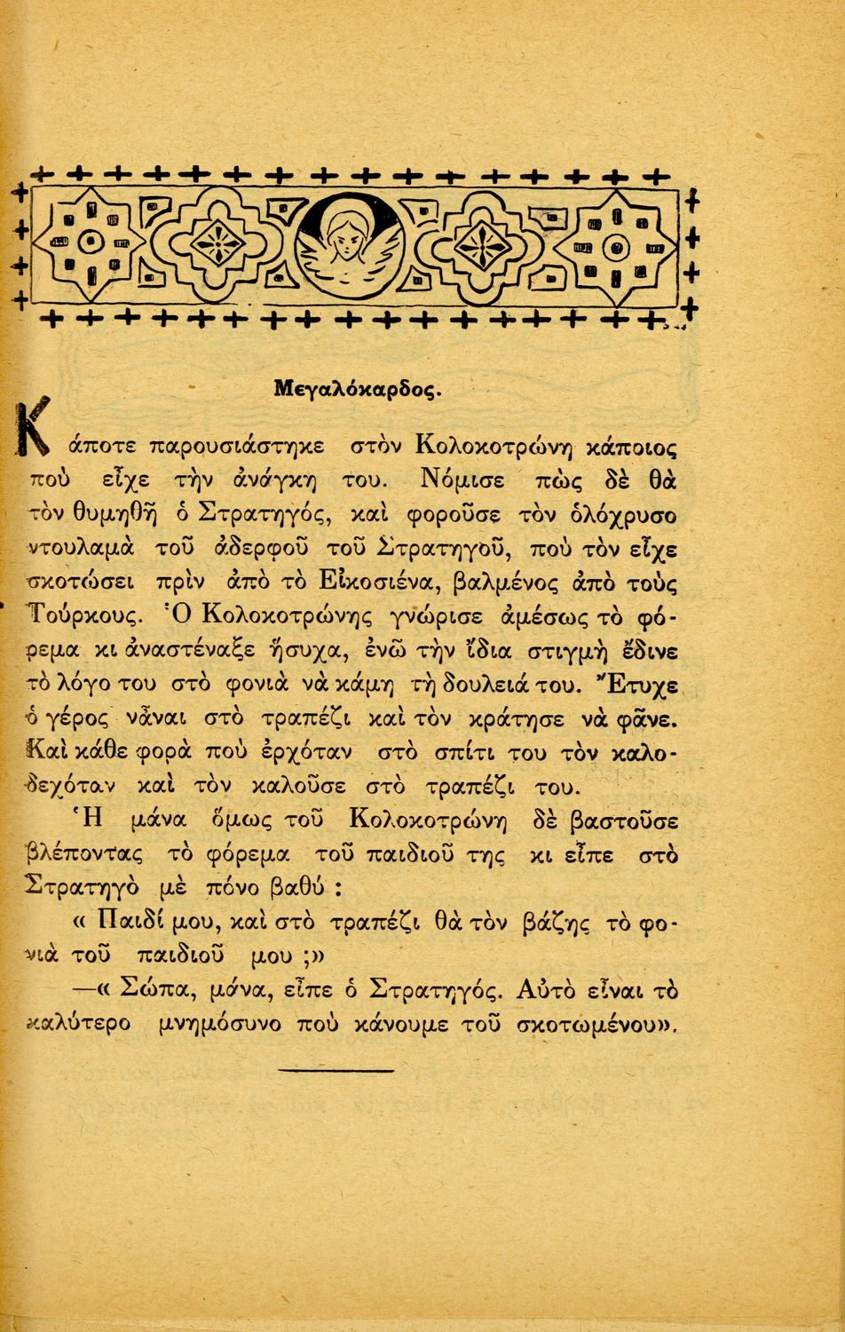Αναγνωστικό ΣΤ΄ Δημοτικού που περιλαμβάνει πεζά και ποιήματα πατριωτικού περιεχομένου εμπνευσμένα, κατά βάση, από την σύγχρονη ελληνική ιστορία και δη την Ελληνική Επανάσταση.