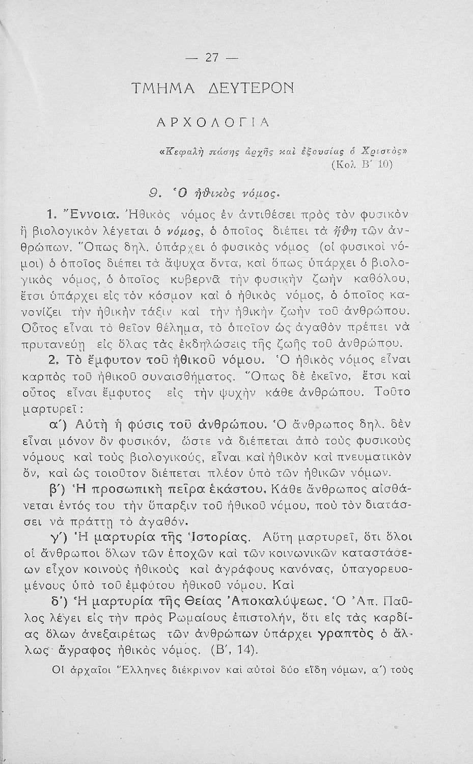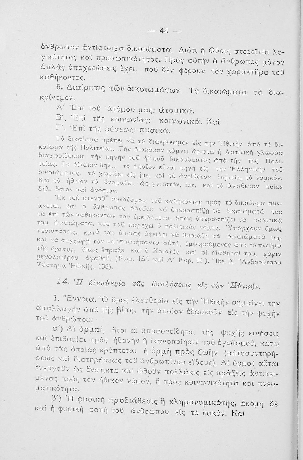 Σχολικό εγχειρίδιο Αγωγής του Πολίτη που αποσκοπεί όχι μόνο στην "μετάδοση στοιχειωδών γνώσεων δικαίου και πολιτικής οικονομίας αλλά κυρίως στην εθνοπρεπής πολιτική, κοινωνική και ηθική διάπλαση της ελληνικής ...