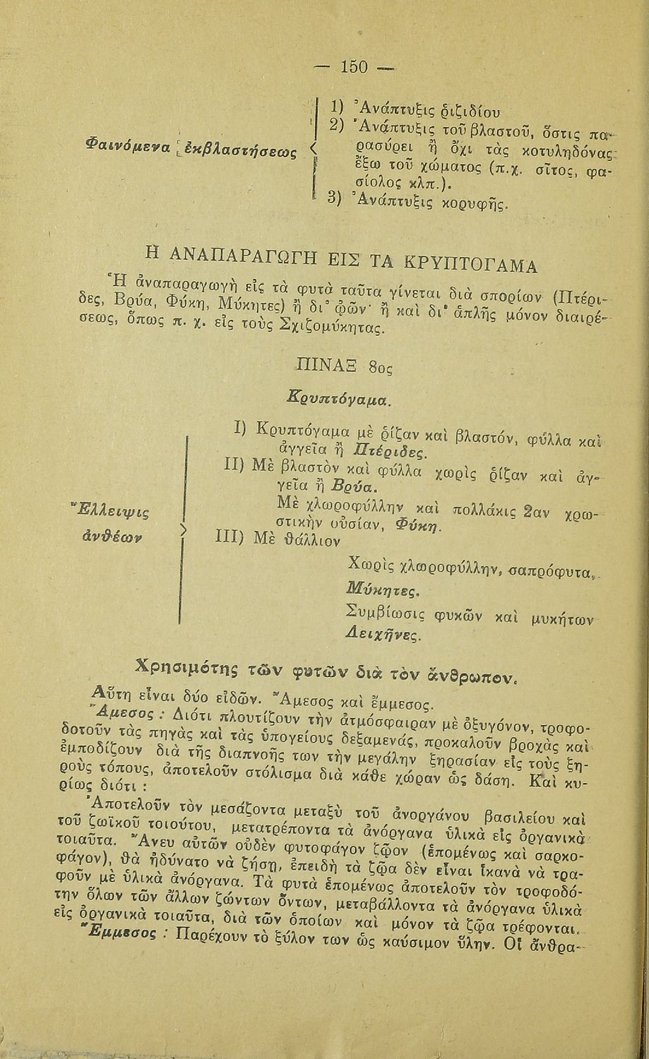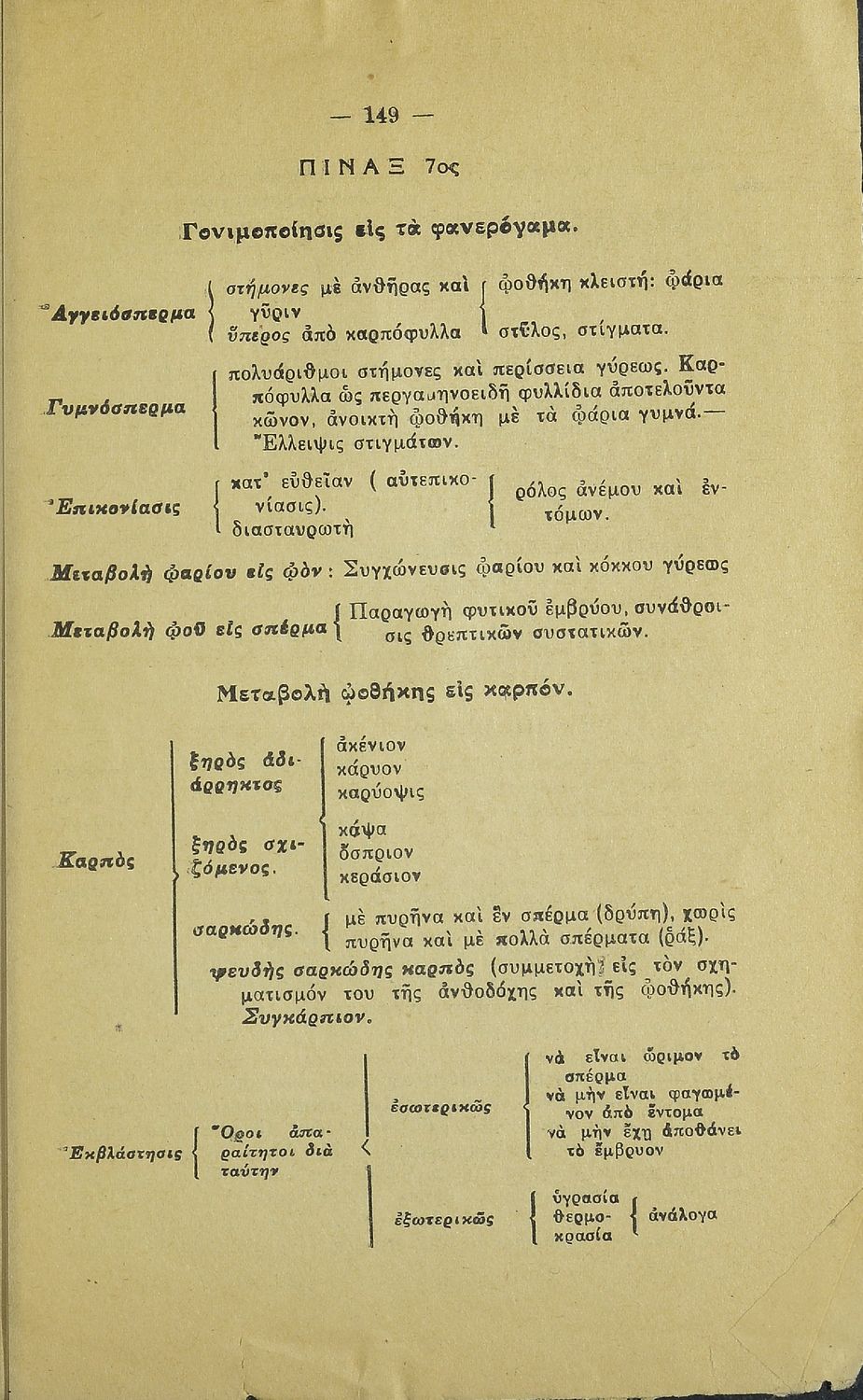 Σχολικό εγχειρίδιο Φυτολογίας Β΄ Εξαταξίου Γυμνασίου και Δ΄ Οκτατάξιου Γυμνασίου που παρουσιάζει τα φυτά ανάλογα με την συνομοταξία στην οποία ανήκουν.