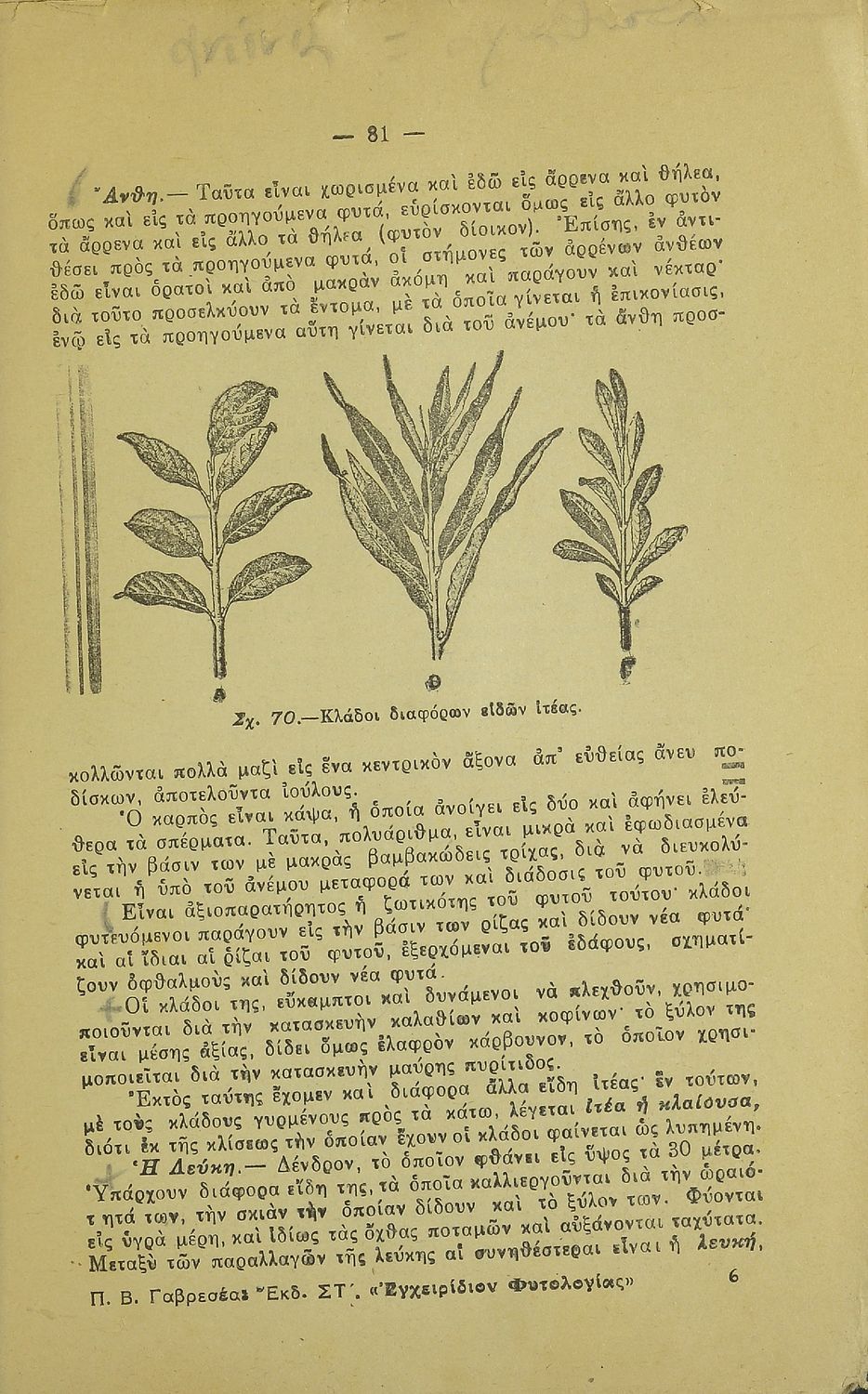 Σχολικό εγχειρίδιο Φυτολογίας για τη Β΄ τάξη των Εξαταξίων Γυμνασίων και Ημιγυμνασίων και τη Δ΄ τάξη των οκταταξίων Γυμνασίων που εξετάζει φυτά της Ελλάδας και παραθέτει στοιχεία γενικής φυτολογίας για την ...