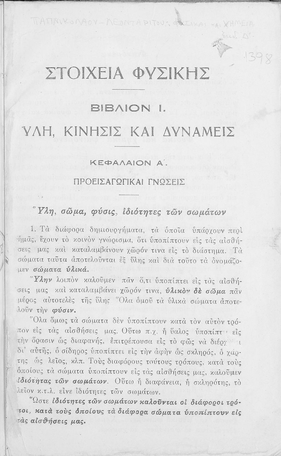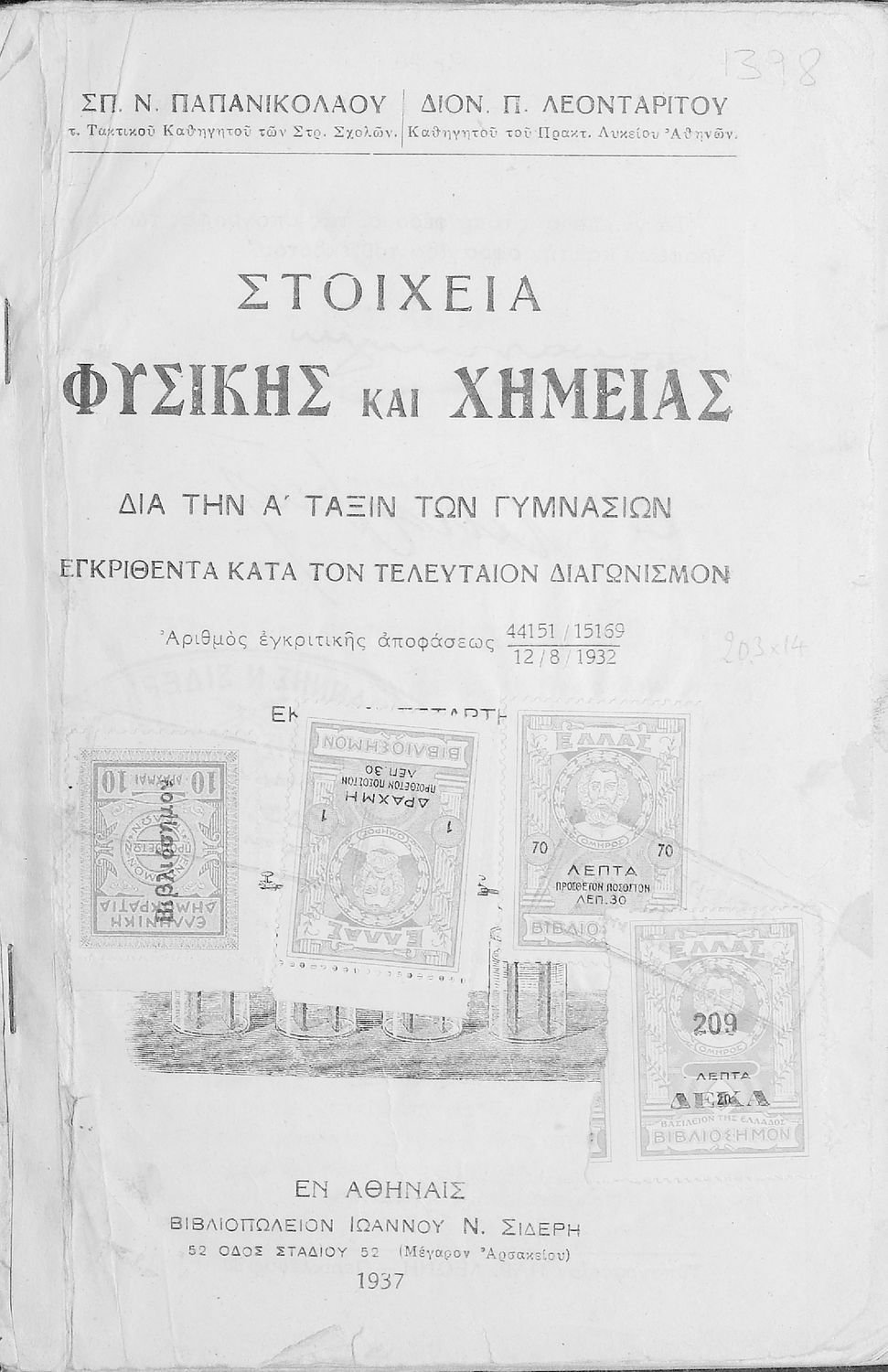 Τίτλος: Στοιχεία φυσικής και χημείας διά την Α΄ τάξιν των Γυμνασίων εγκριθέντα κατά τον τελευταίον διαγωνισμόν