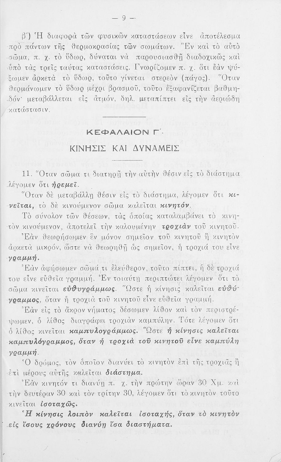 Σχολικό εγχειρίδιο Φυσικής και Χημείας Γ΄ Γυμνασίου που εστιάζει στα φυσικά και χημικά φαινόμενα και ειδικά στην φυσική κατάσταση των σωμάτων, στην αδράνεια και στην κίνηση. Περιέχει και στοιχεία μηχανικής.