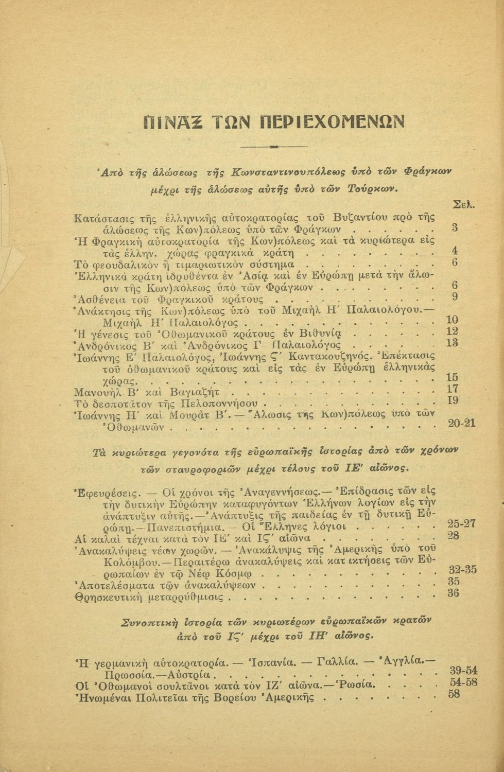 Ελληνική ιστορία από των χρόνων της Αχαϊκής συμπολιτείας μέχρι της Αλώσεως της Κωνσταντινούπολης υπό των Φράγκων μέχρι των καθ'ημάς χρόνων και τα κυριωτέρα εκ της νέας και νεωτάτης ευρωπαϊκής ιστορίας διά την Γ΄ τάξιν των Ελληνικών Σχολείων